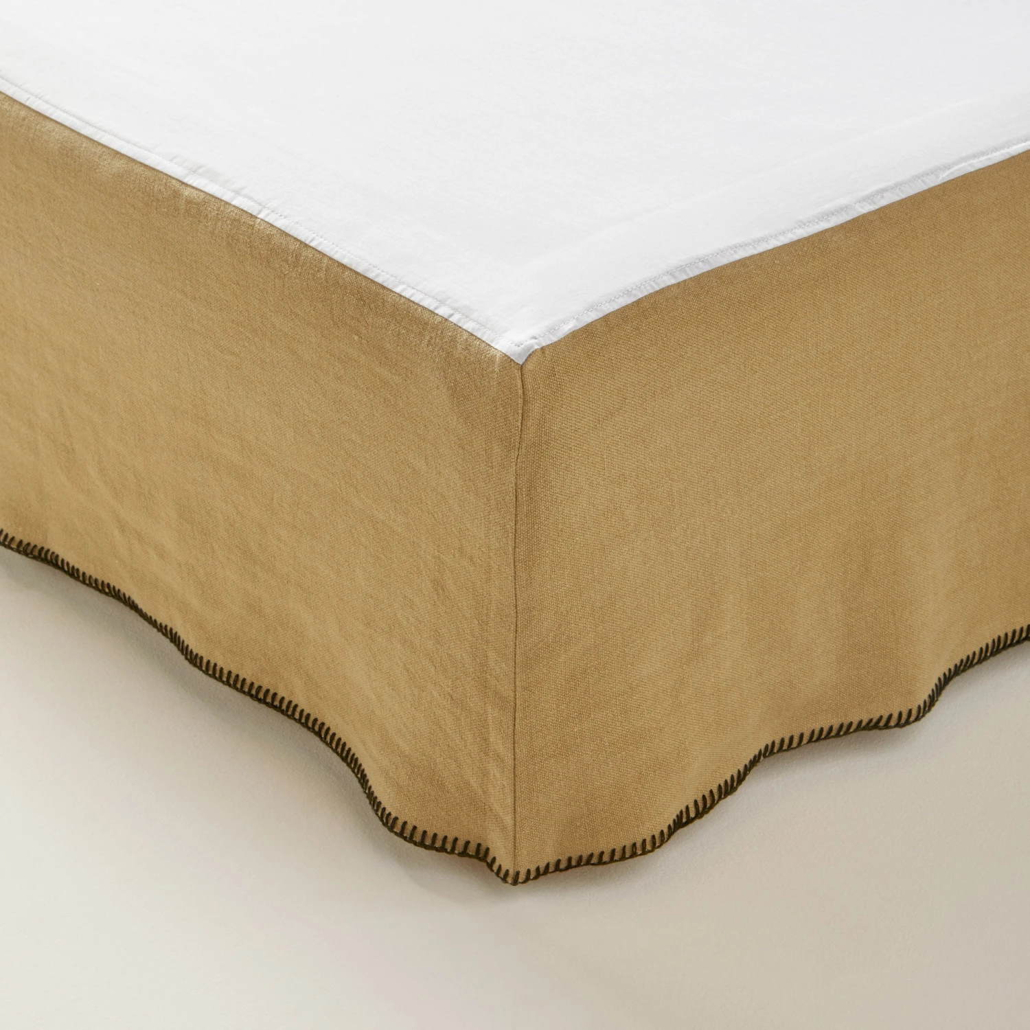 Le cache-sommier Nino, en lin lavé épais orné d’un feston noir se décline dans une jolie teinte sable et ne manque pas de charme naturel !