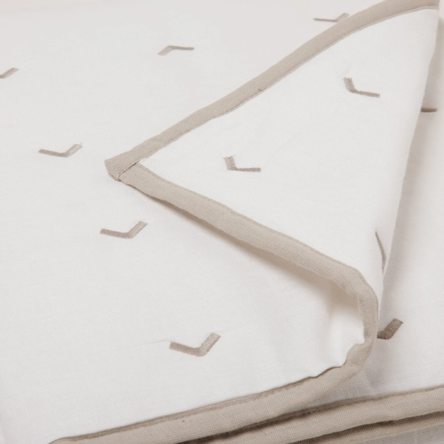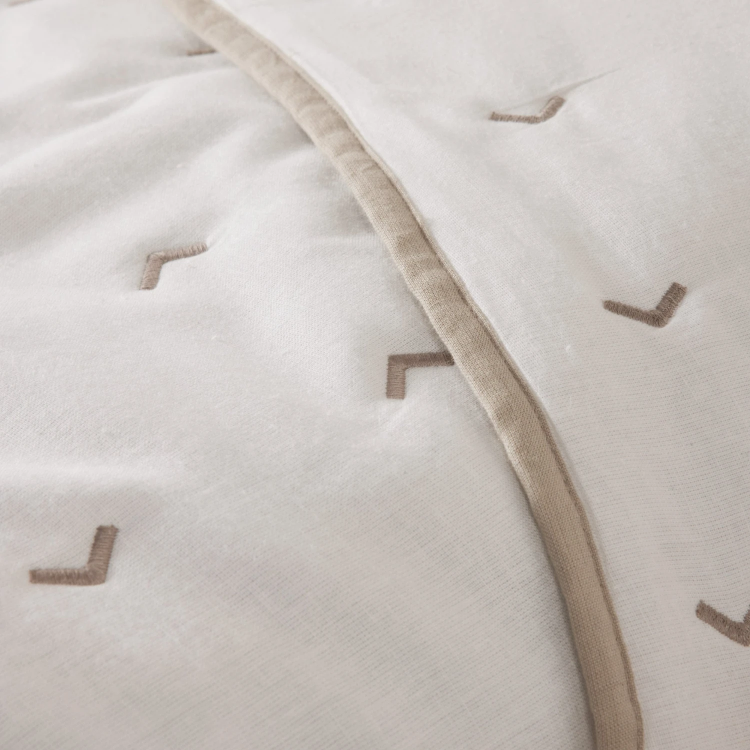 En voile de coton lin, rebrodé d’un micro motif graphique, l’édredon Vinnie est très doux, léger, pour donner une touche particulièrement charmante à votre chambre.