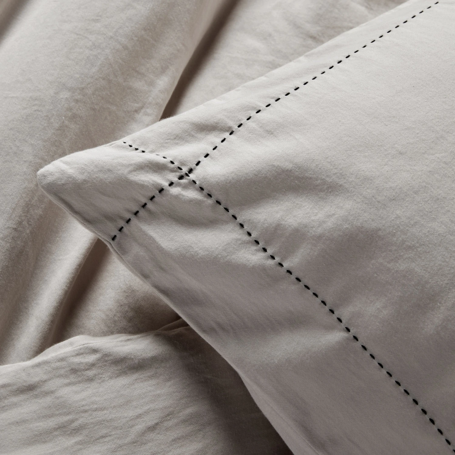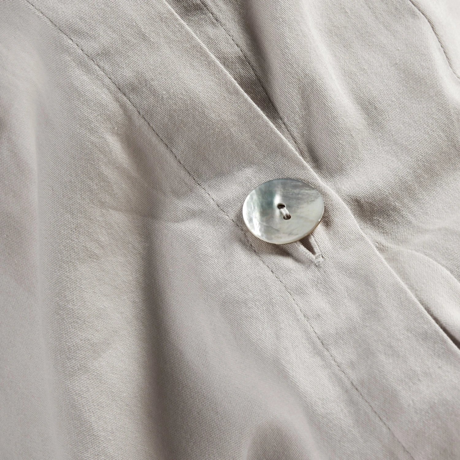 La housse de couette Anouk galet est faite en 100% satin de coton lavé. Nous avons choisi cette matière pour son incroyable douceur et son aspect subtilement patiné si élégant.