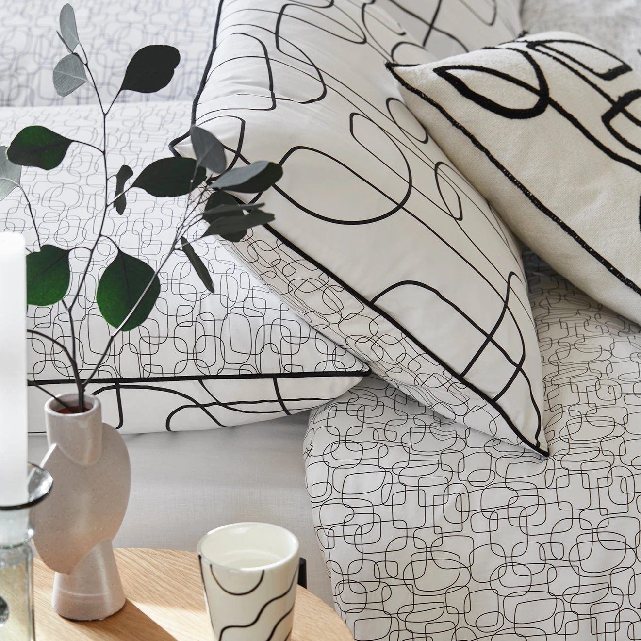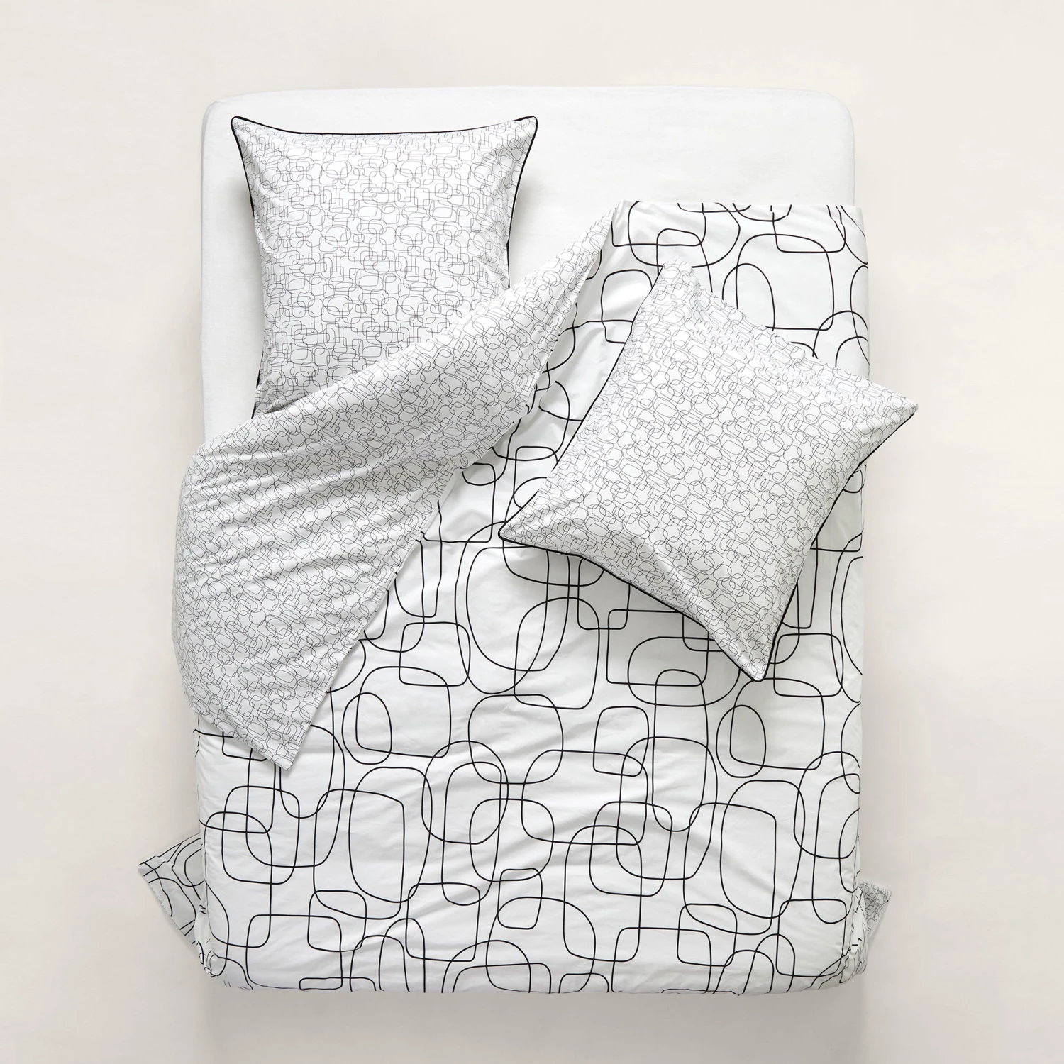 Le motif filaire de la housse de couette Ariana est souligné d’un fin passepoil noir en coton et apporte une touche contemporaine. Grâce à son tissage de 80 fils / cm2, la percale de coton de cette housse vous bordera de douceur.