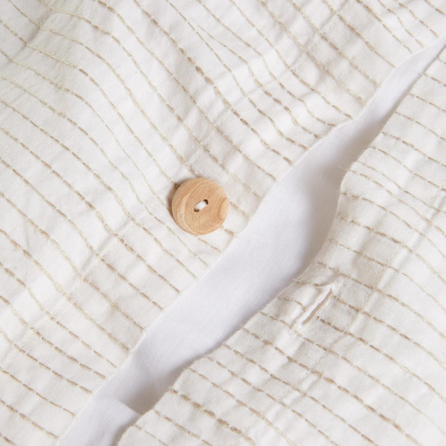 Plongez dans le confort et l’élégance avec notre nouvelle housse de couette Elie en lin coton ivoire agrémentée de délicates rayures. Cette parure de lit offre une alliance parfaite entre l’esthétique raffinée et l’éthique environnementale.