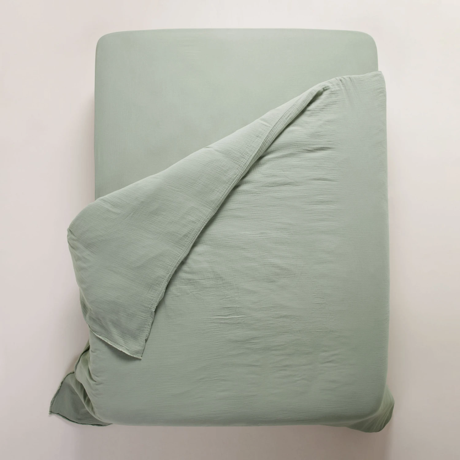 Très agréable au contact de la peau, le linge de lit Lou vert sauge en gaze de coton lavé vous assurera un sommeil réparateur.