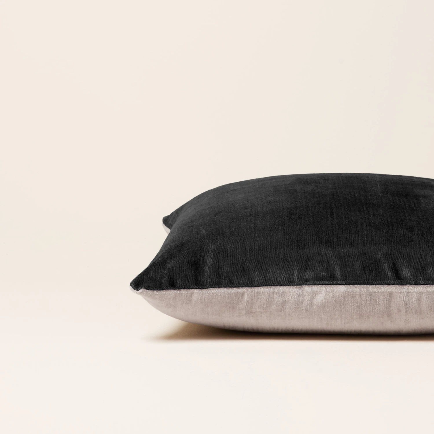 La housse de coussin Castiglione en velours noir se distingue par son coté bicolore : une face colorée et l’autre claire, pour une décoration au gré de vos envies.