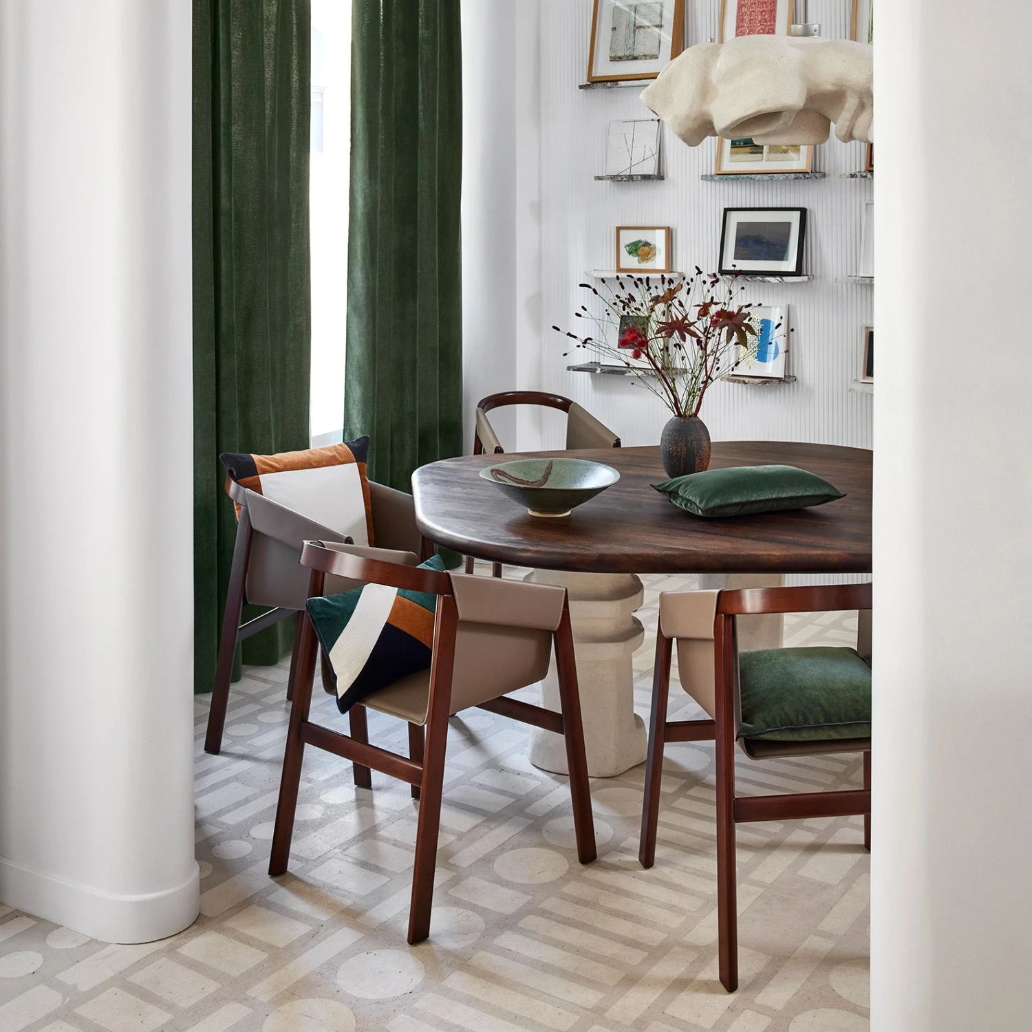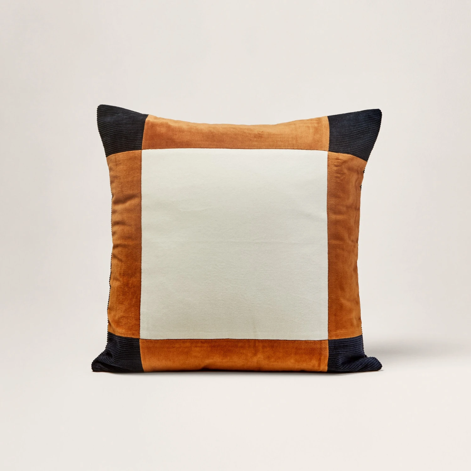 Les housses de coussin Damian se distinguent grâce à leur motif géométrique XXL formé par des empiècements de velours de coton.