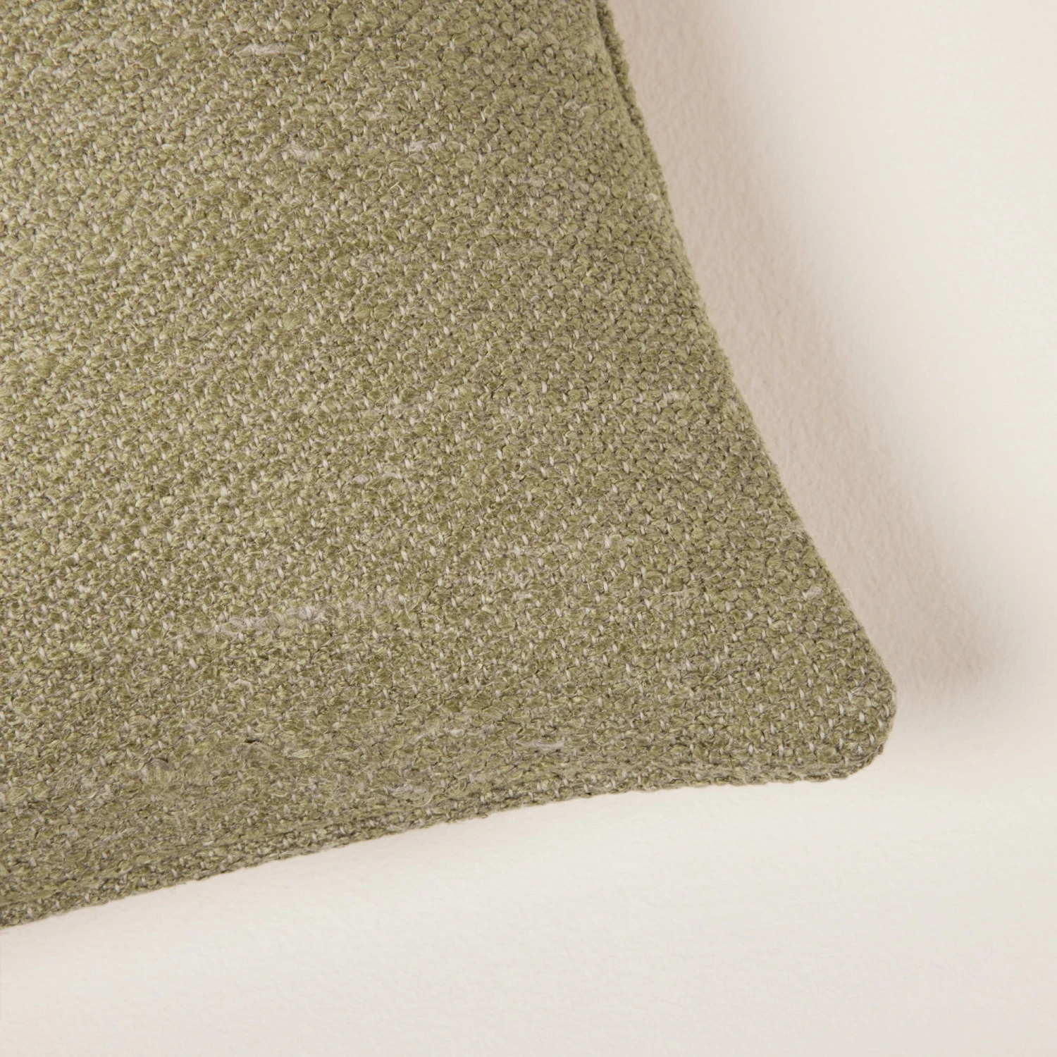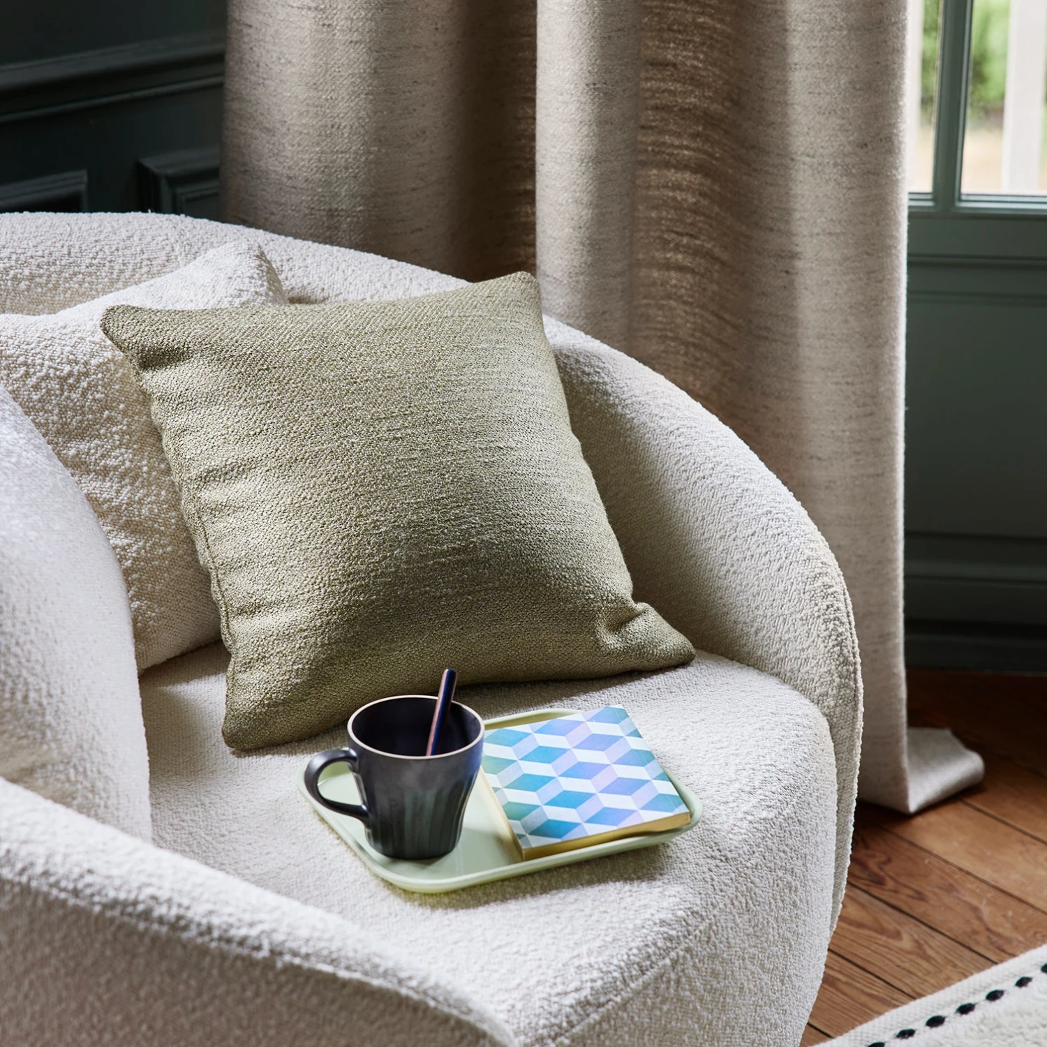La housse de coussin Orsso vert olivier, avec son jacquard texturé très dense, apporte un nouvel effet matière sublime à notre collection.
