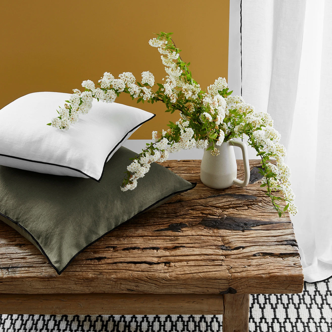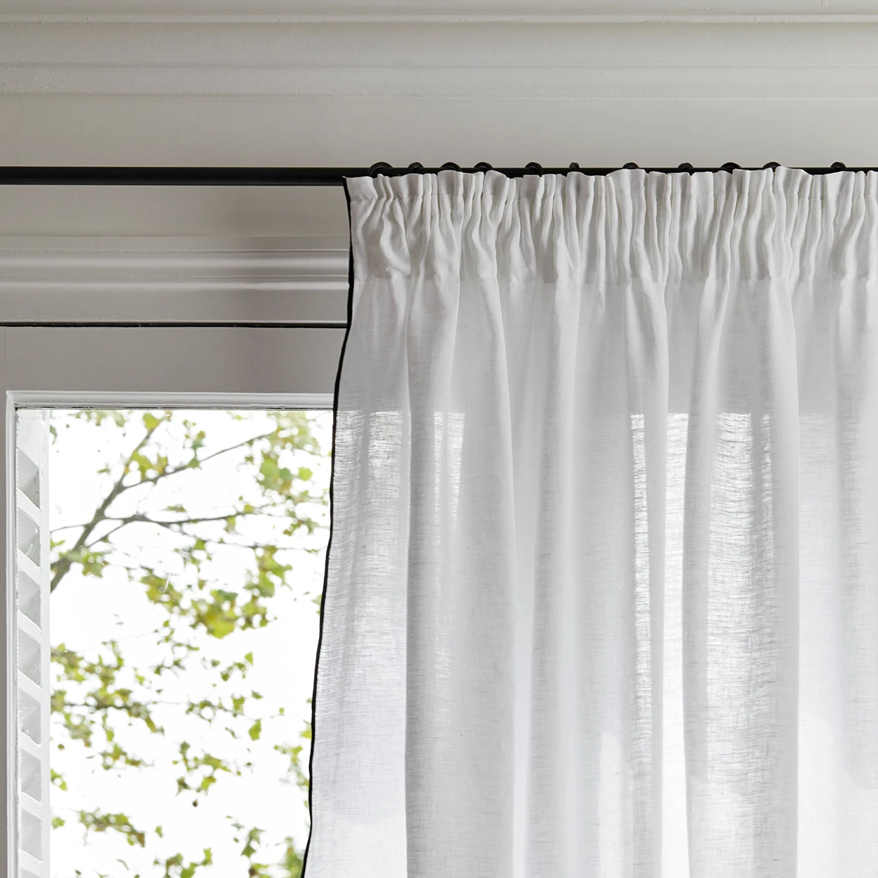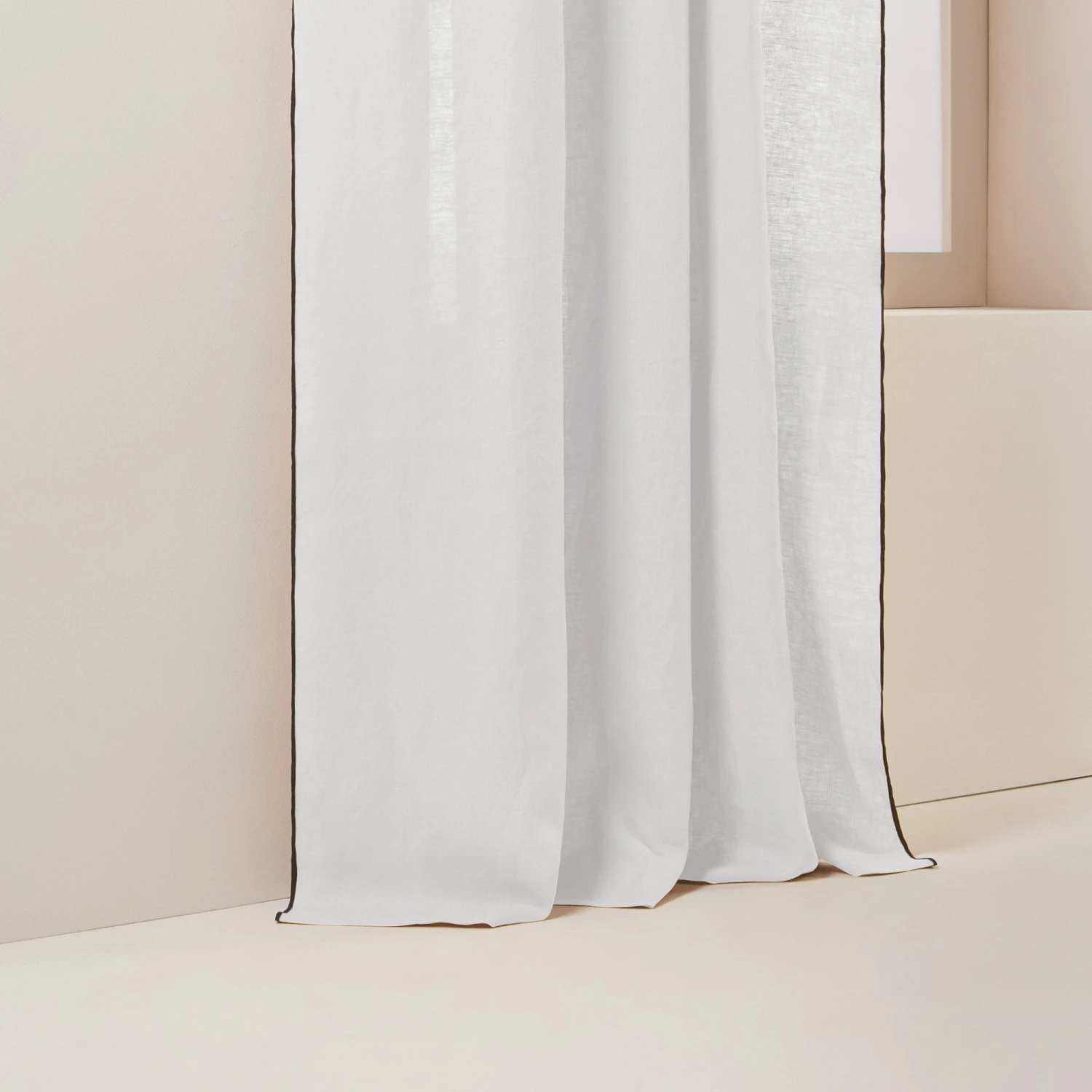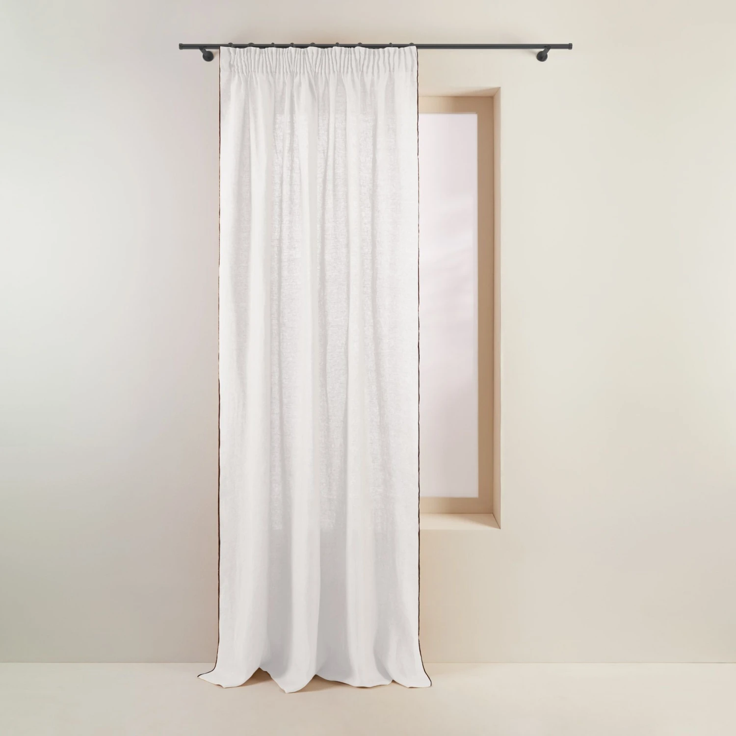 Le rideau à galon fronceur Carlina blanc pur souligné d’un bourdon noir est beau par son évidente simplicité. Ce rideau en lin léger trouve son charme bohème à travers sa fronce et son plissé délicat.