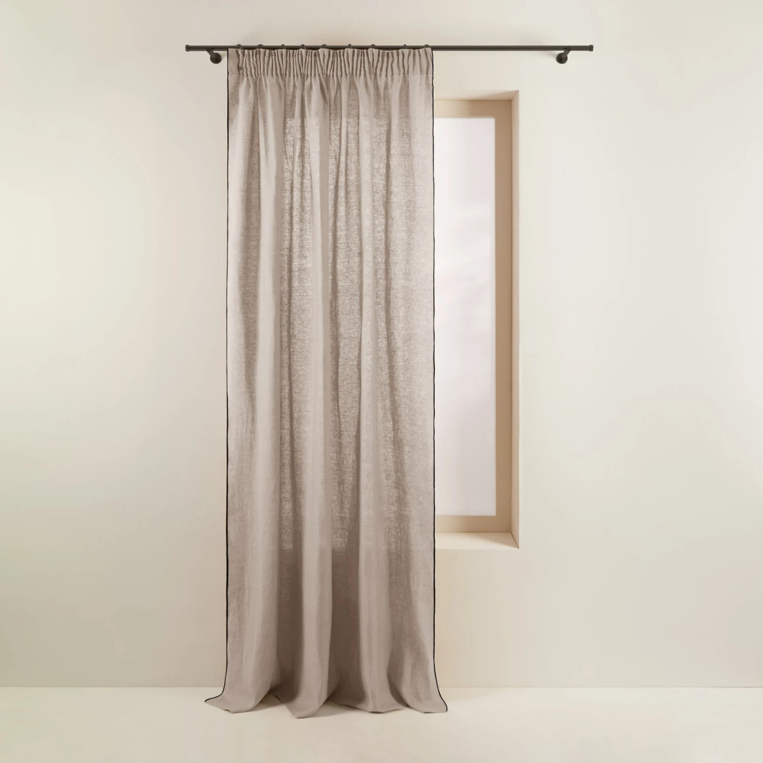 Le rideau à galon fronceur Carlina ficelle souligné d’un bourdon noir est beau par son évidente simplicité. Ce rideau en lin léger trouve son charme bohème à travers sa fronce et son plissé délicat.