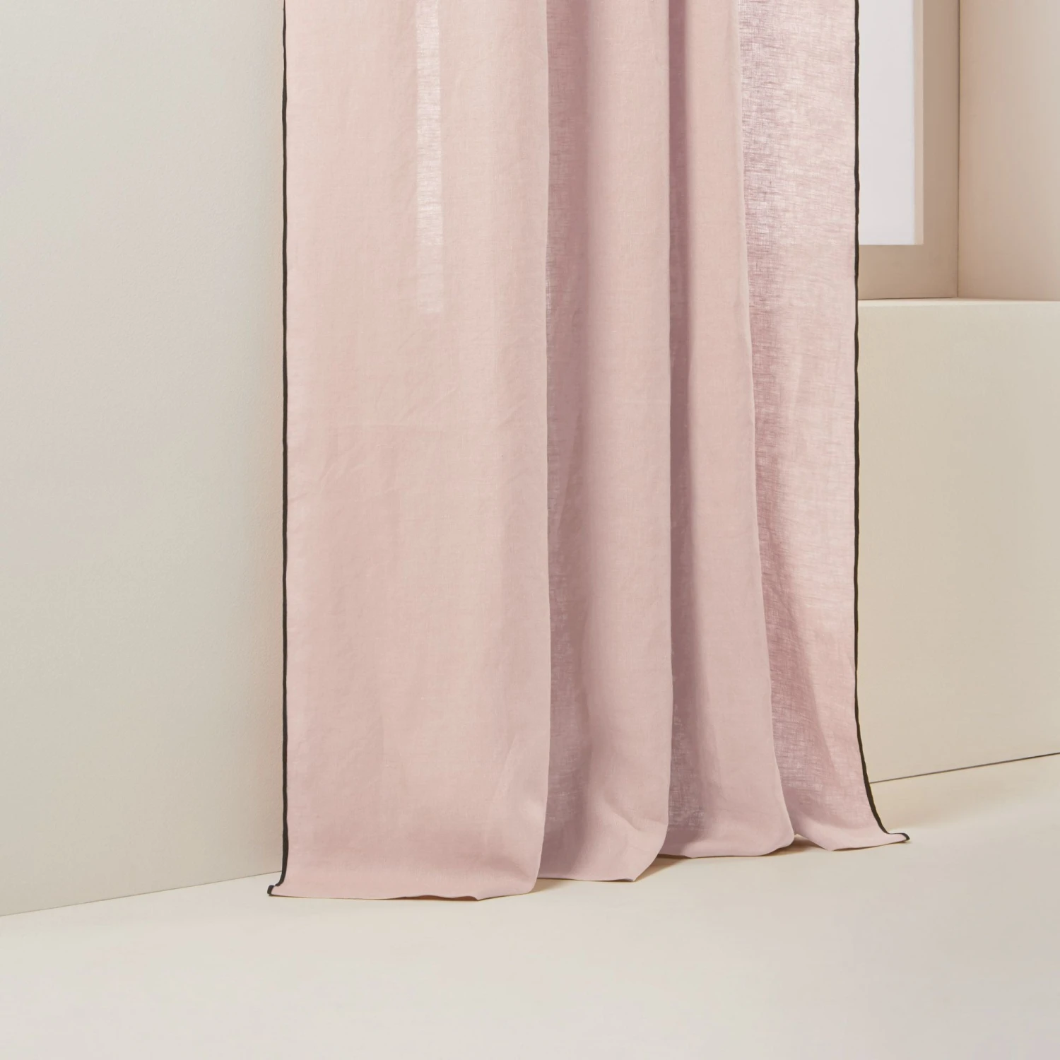 Le rideau à galon fronceur Carlina rose poudré souligné d’un bourdon noir est beau par son évidente simplicité. Ce rideau en lin léger trouve son charme bohème à travers sa fronce et son plissé délicat.