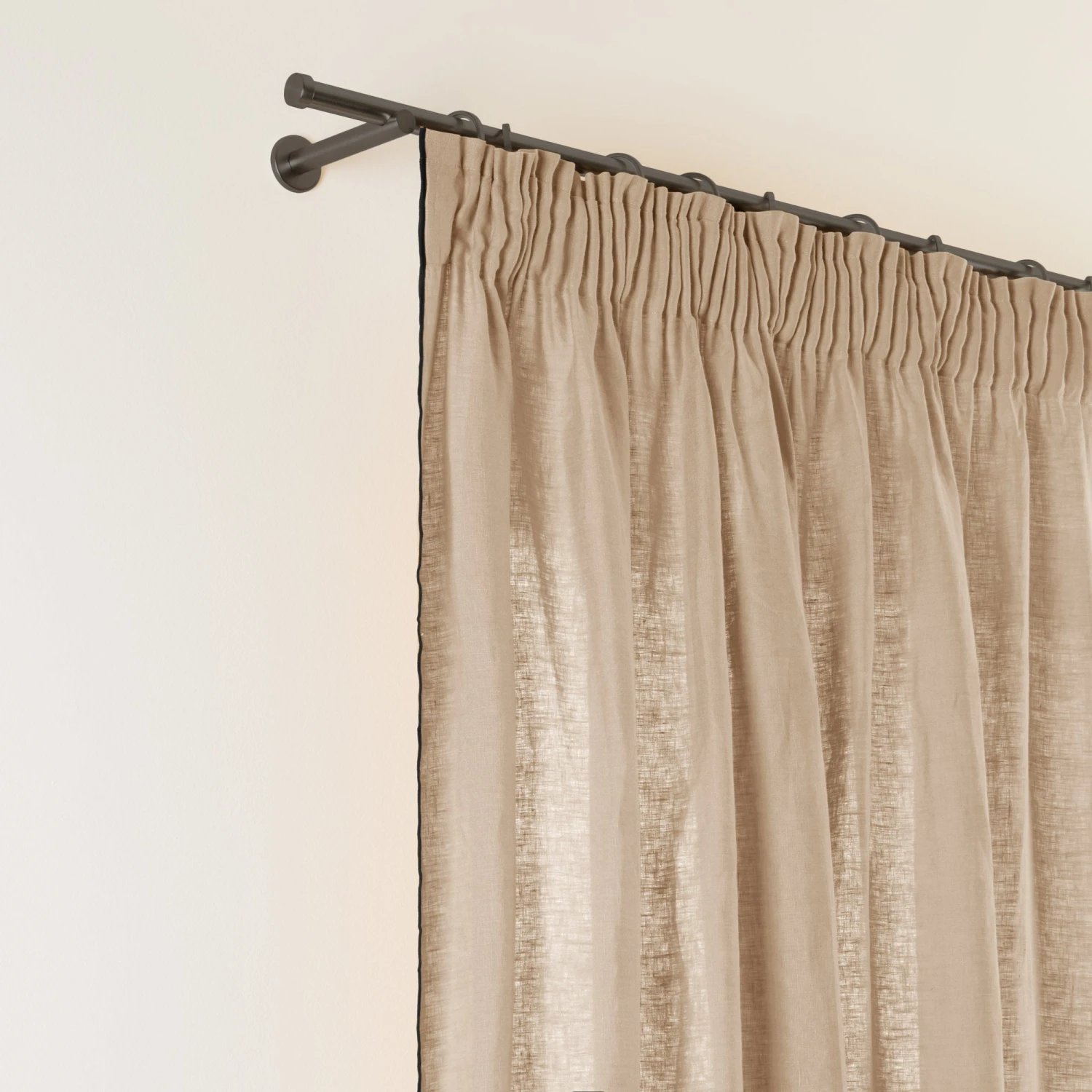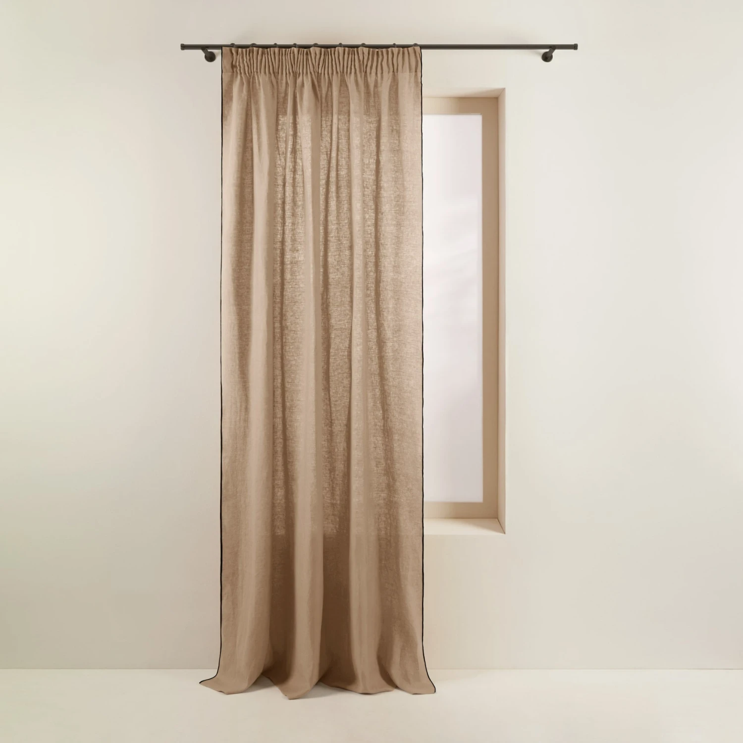 Le rideau à galon fronceur Carlina sable souligné d’un bourdon noir est beau par son évidente simplicité. Ce rideau en lin léger trouve son charme bohème à travers sa fronce et son plissé délicat.