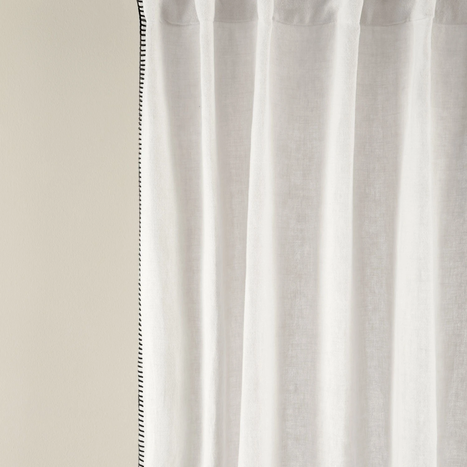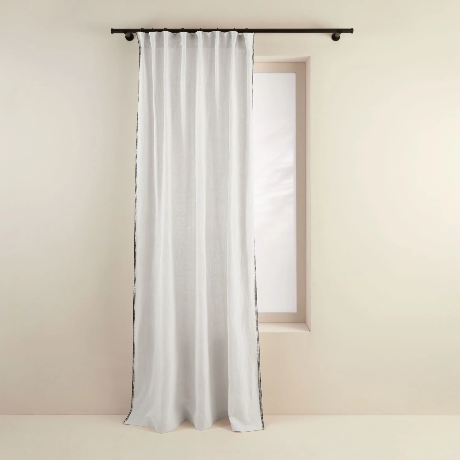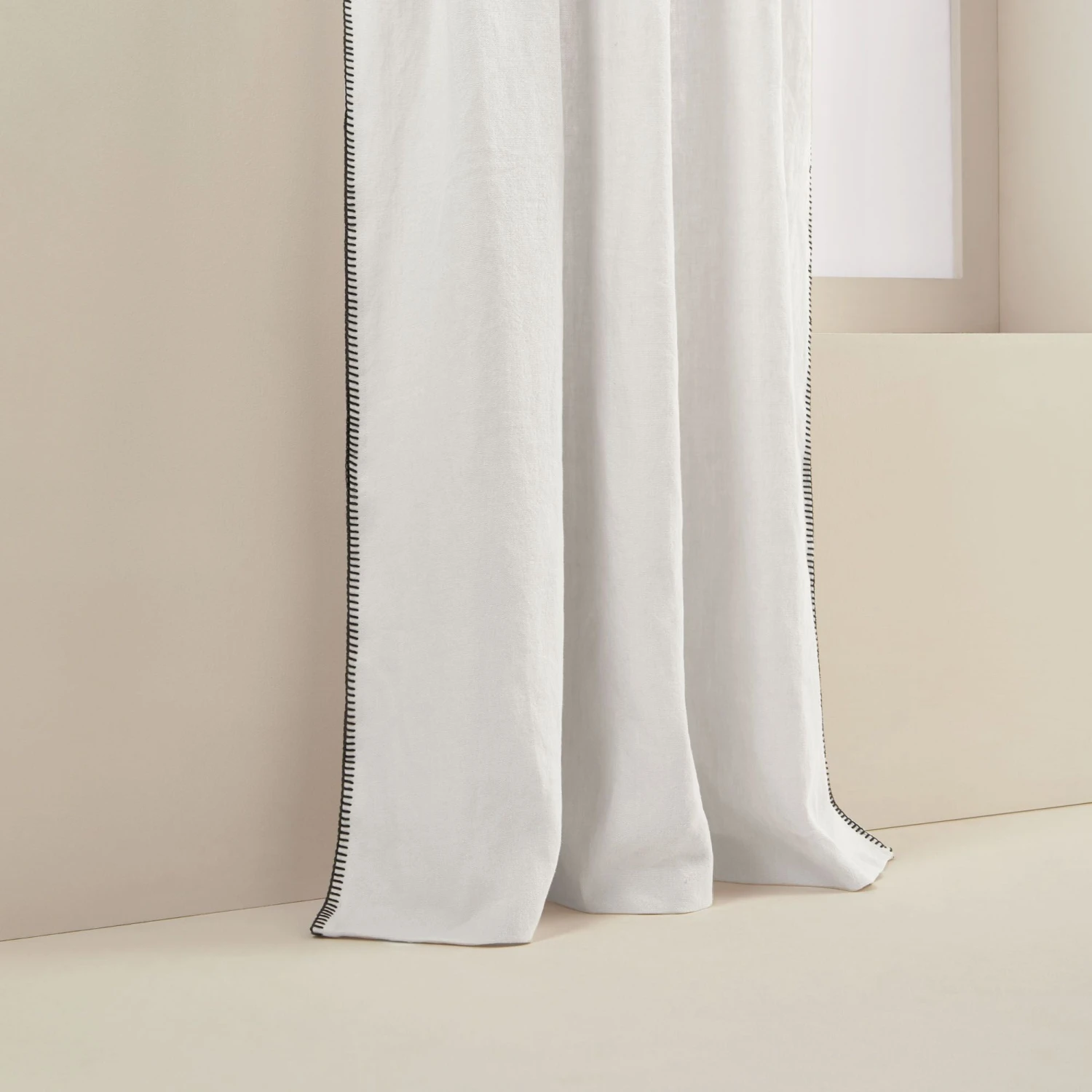 Contrasté d’un point de feston noir, le rideau à galon fronceur Nino blanc minéral insuffle un esprit brut et authentique grâce à son lin lavé épais.