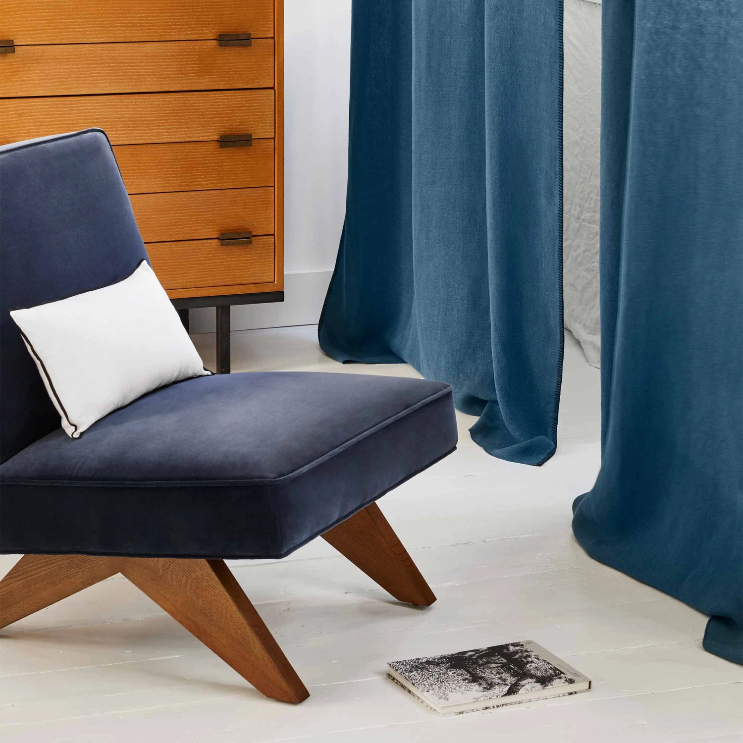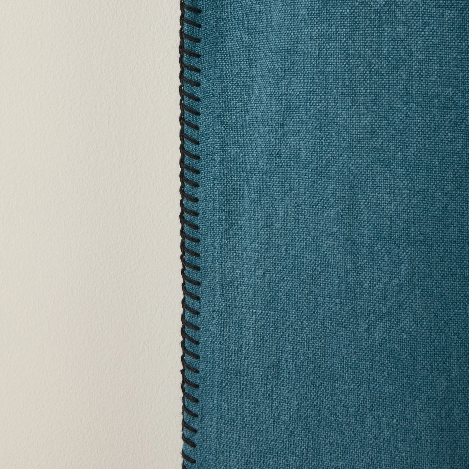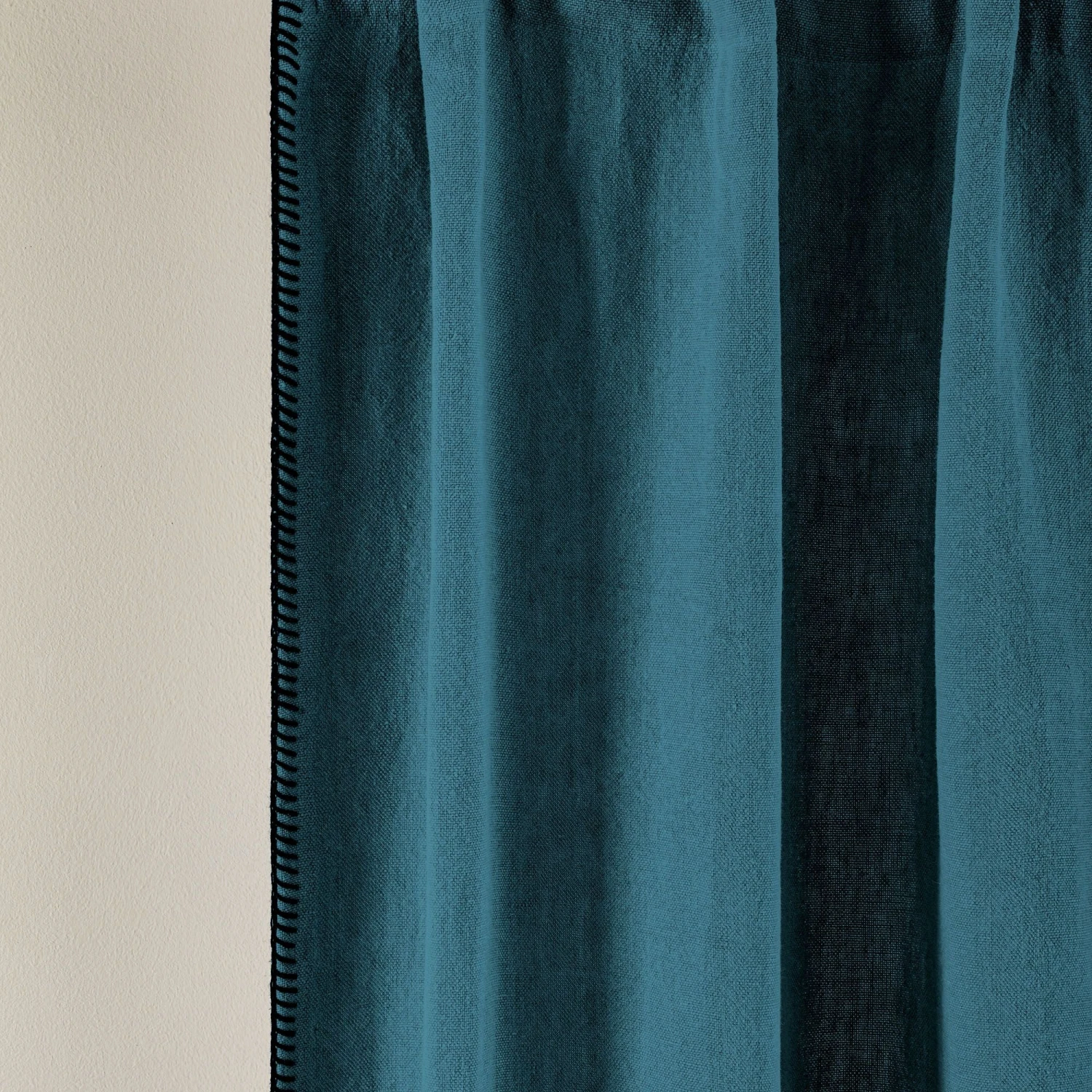 Contrasté d’un point de feston noir, le rideau à galon fronceur Nino bleu indigo insuffle un esprit brut et authentique grâce à son lin lavé épais.