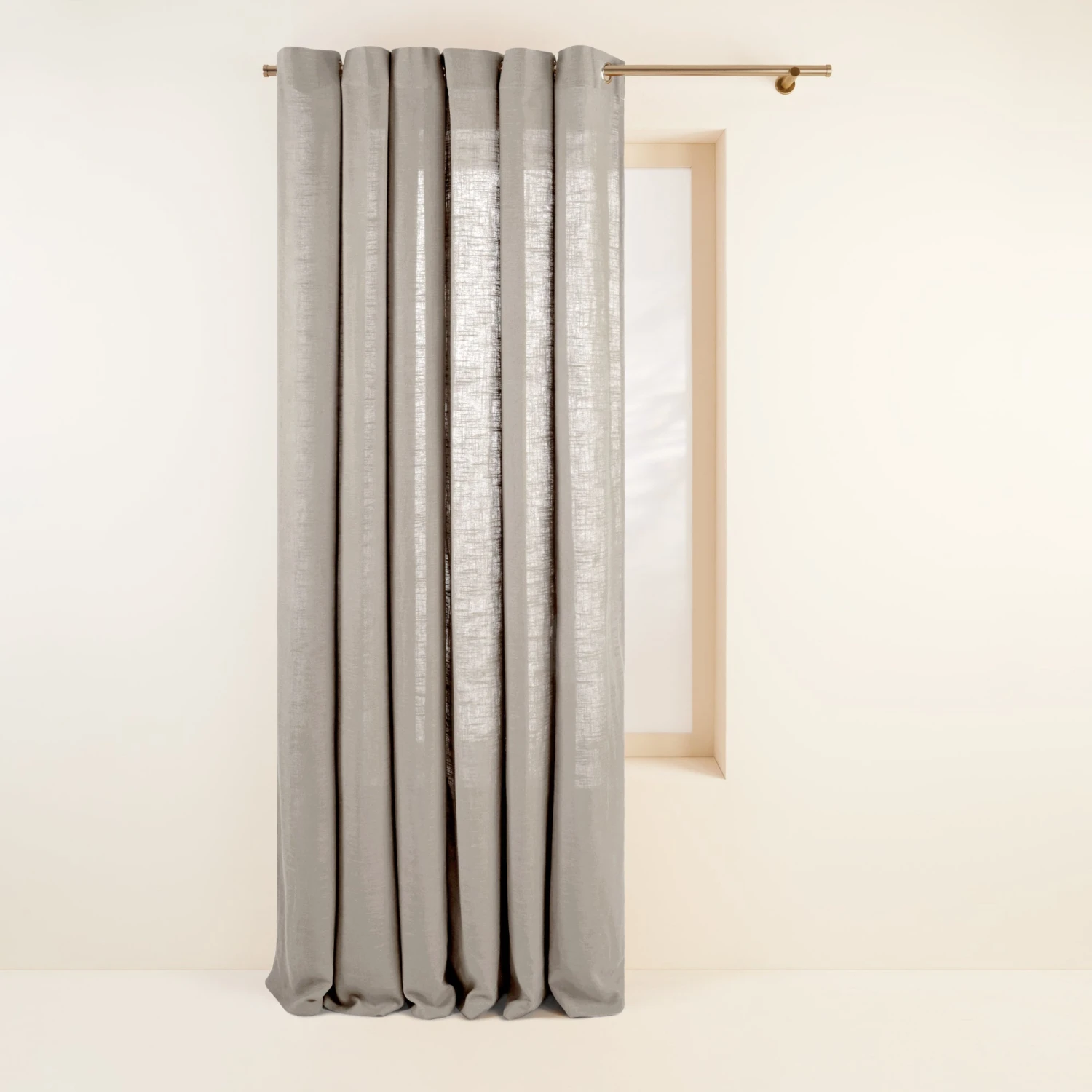 Le rideau à œillets Bellavista beige chataigne crée une ambiance décontractée grâce à sa matière et son tombé souple. Ses fibres, incluant 25% de lin, se mêlent dans un tissage flammé qui lui apporte la touche naturelle que l’on adore.