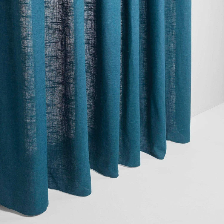 Le rideau à œillets Bellavista bleu lagon crée une ambiance décontractée grâce à sa matière et son tombé souple. Ses fibres, incluant 25% de lin, se mêlent dans un tissage flammé qui lui apporte la touche naturelle que l’on adore.