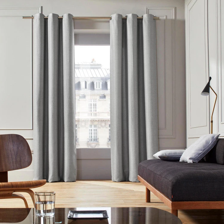 Le rideau à œillets Coconut gris perle séduit par l’élégance de son tissage en armure toile qui lui donne de la structure et un tombé parfait. Ses œillets aluminium permettent une installation rapide avec une belle ondulation.