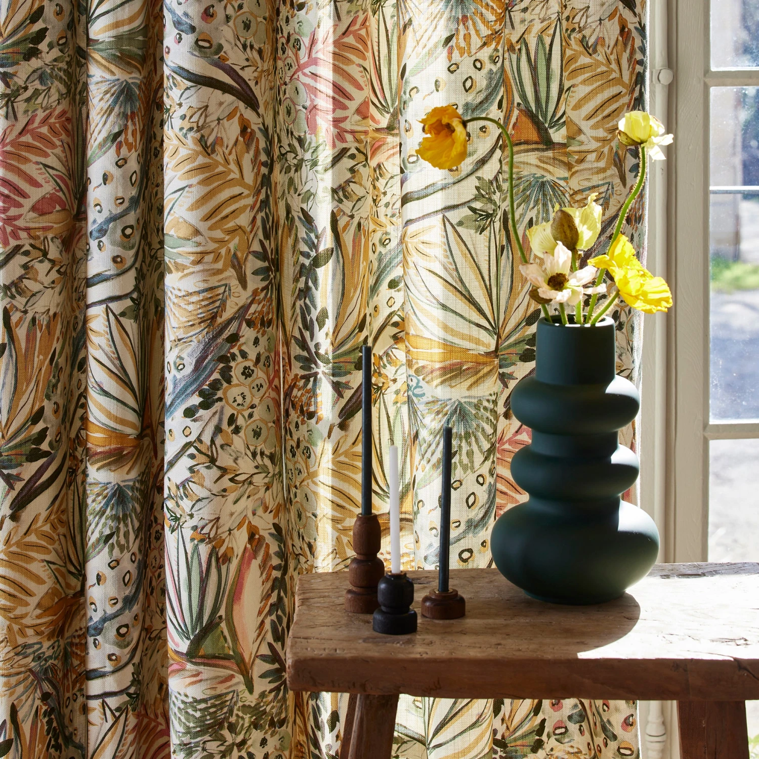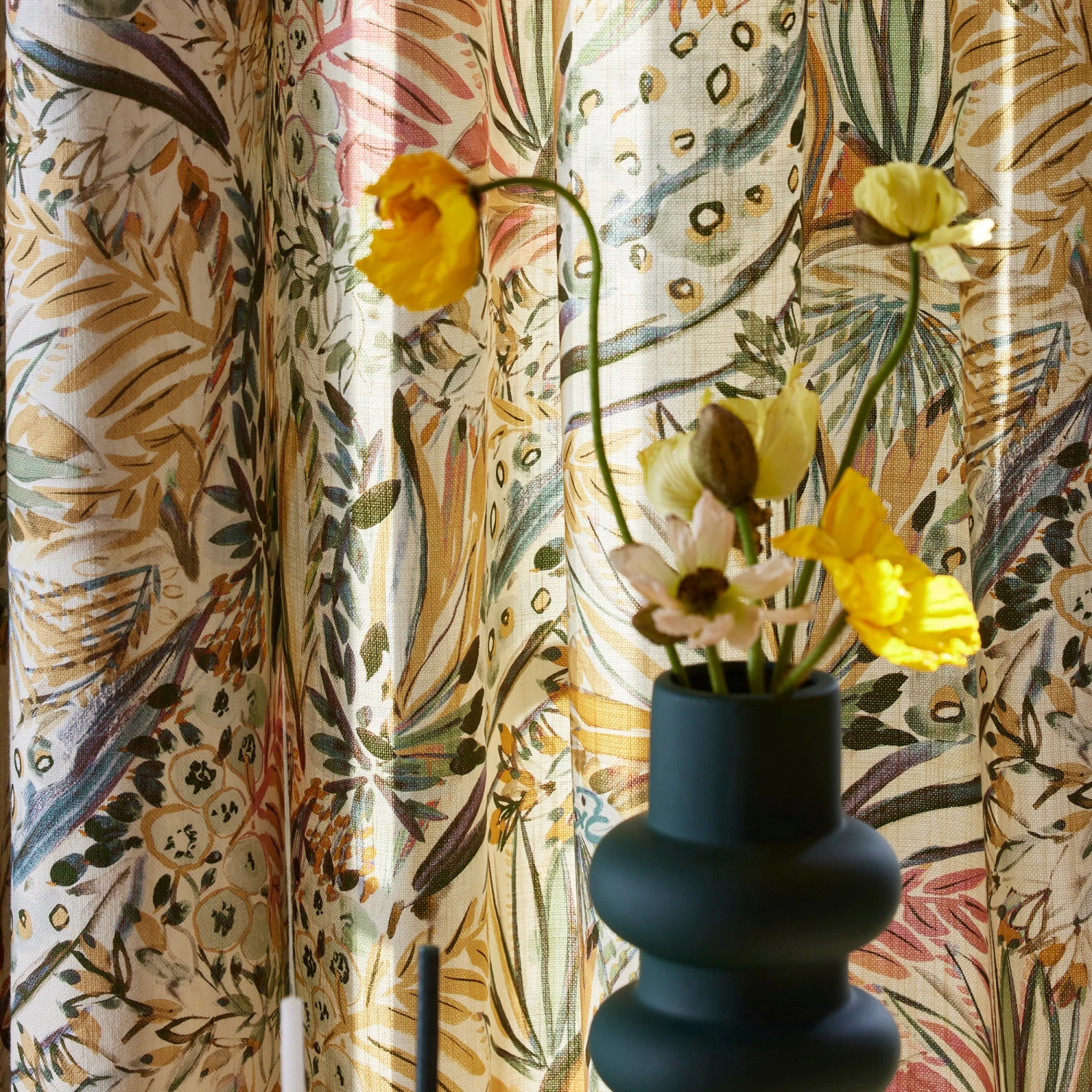 Le motif du rideau imprimé à œillets Aquarela est une invitation à la gaieté. Son style pictural lui donne l’allure d’une toile de peintre, où les coups de pinceaux et les lavis de couleurs se superposent.