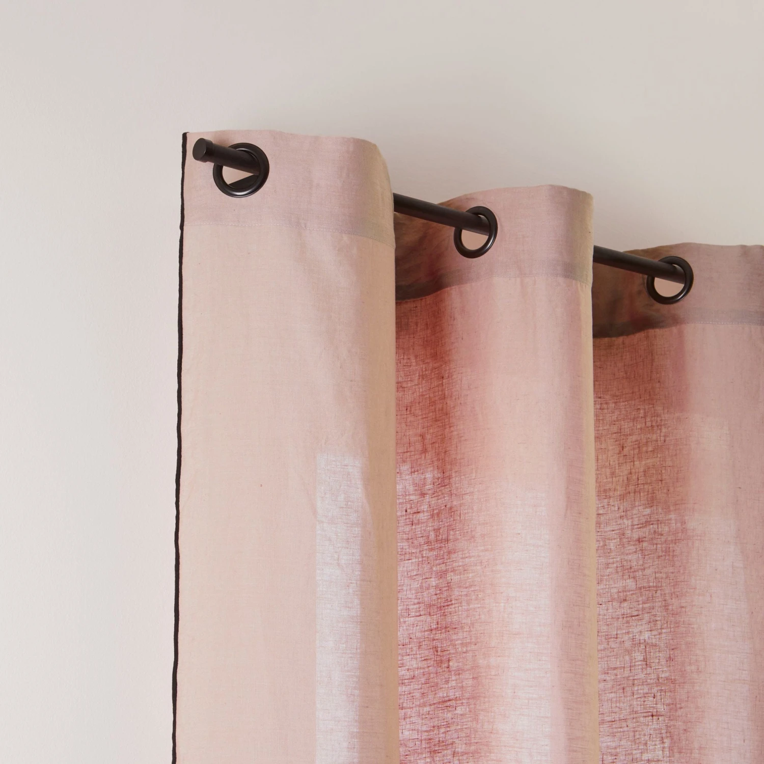 Le rideau à oeillets noirs Carlina rose poudré et bourdon noir est beau par son évidente simplicité. Réalisé avec des œillets noirs et souligné d’un point bourdon noir, ce rideau en lin léger s’installe facilement sur vos fenêtres et les habille d’une ondulation délicate au charme bohème.