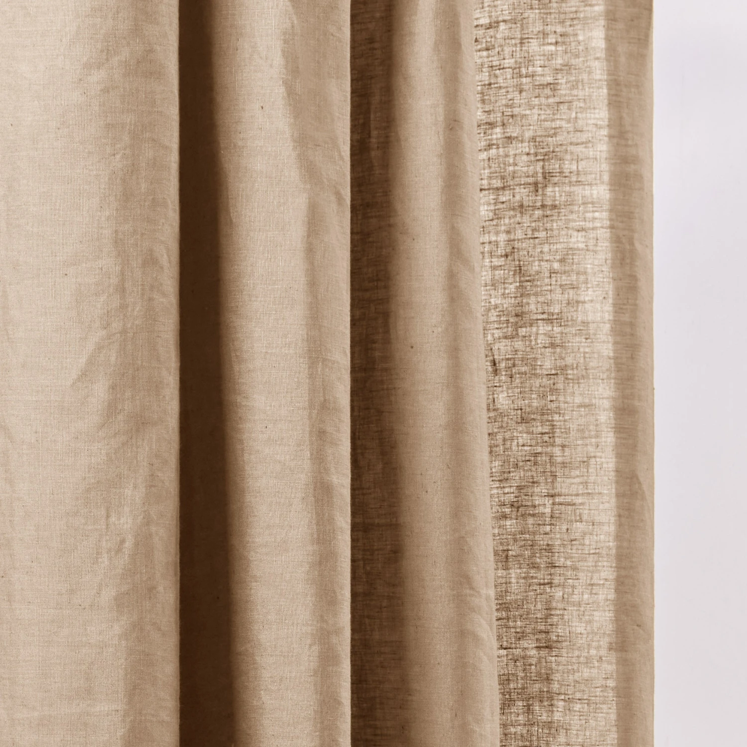 Le rideau à oeillets noirs Carlina sable et bourdon noir est beau par son évidente simplicité. Réalisé avec des œillets noirs et souligné d’un point bourdon noir, ce rideau en lin léger s’installe facilement sur vos fenêtres et les habille d’une ondulation délicate au charme bohème.
