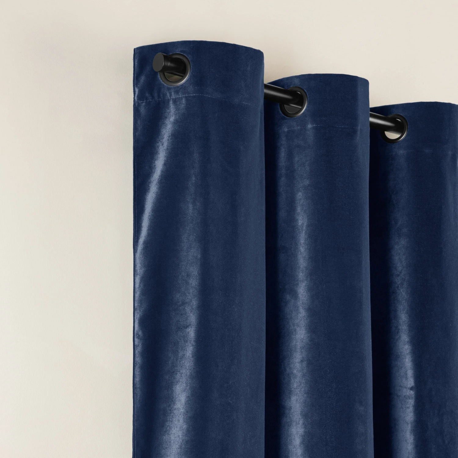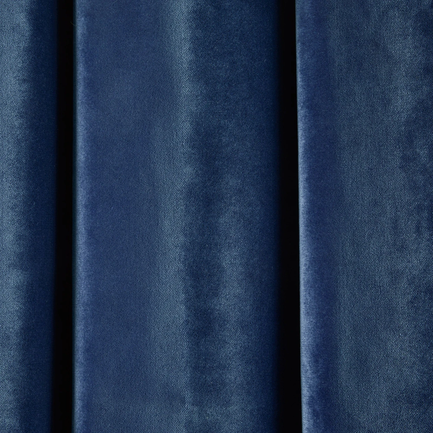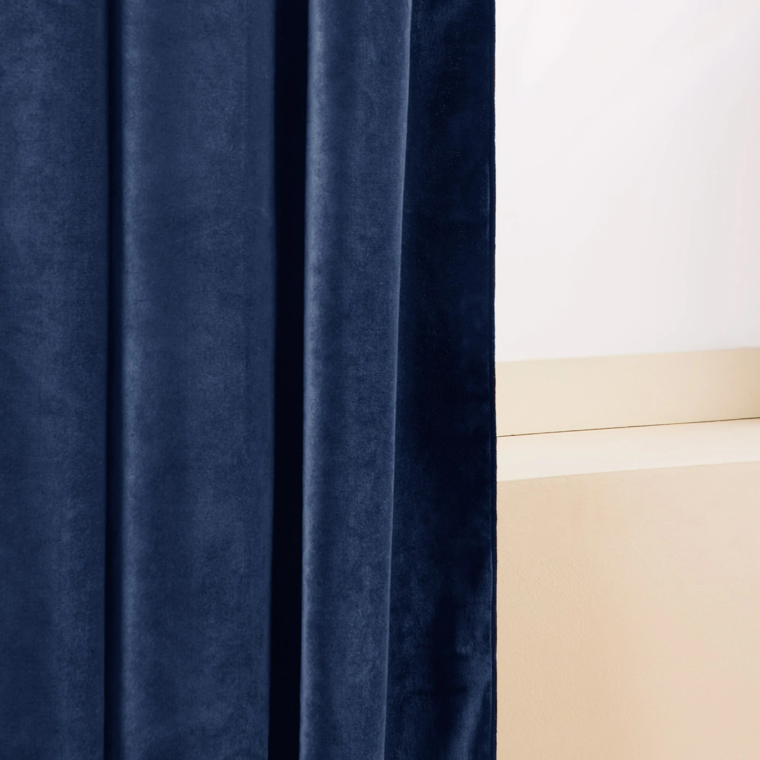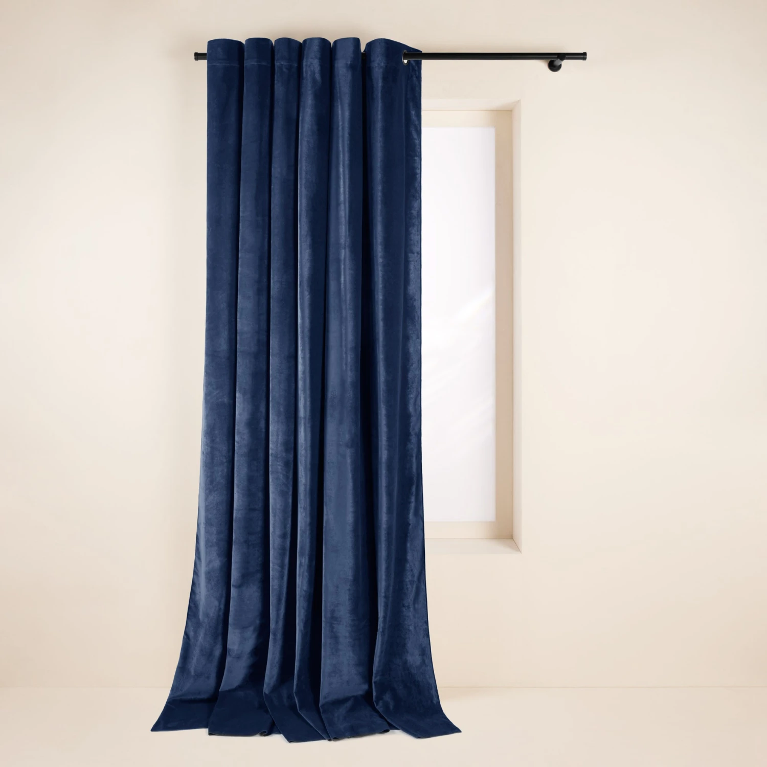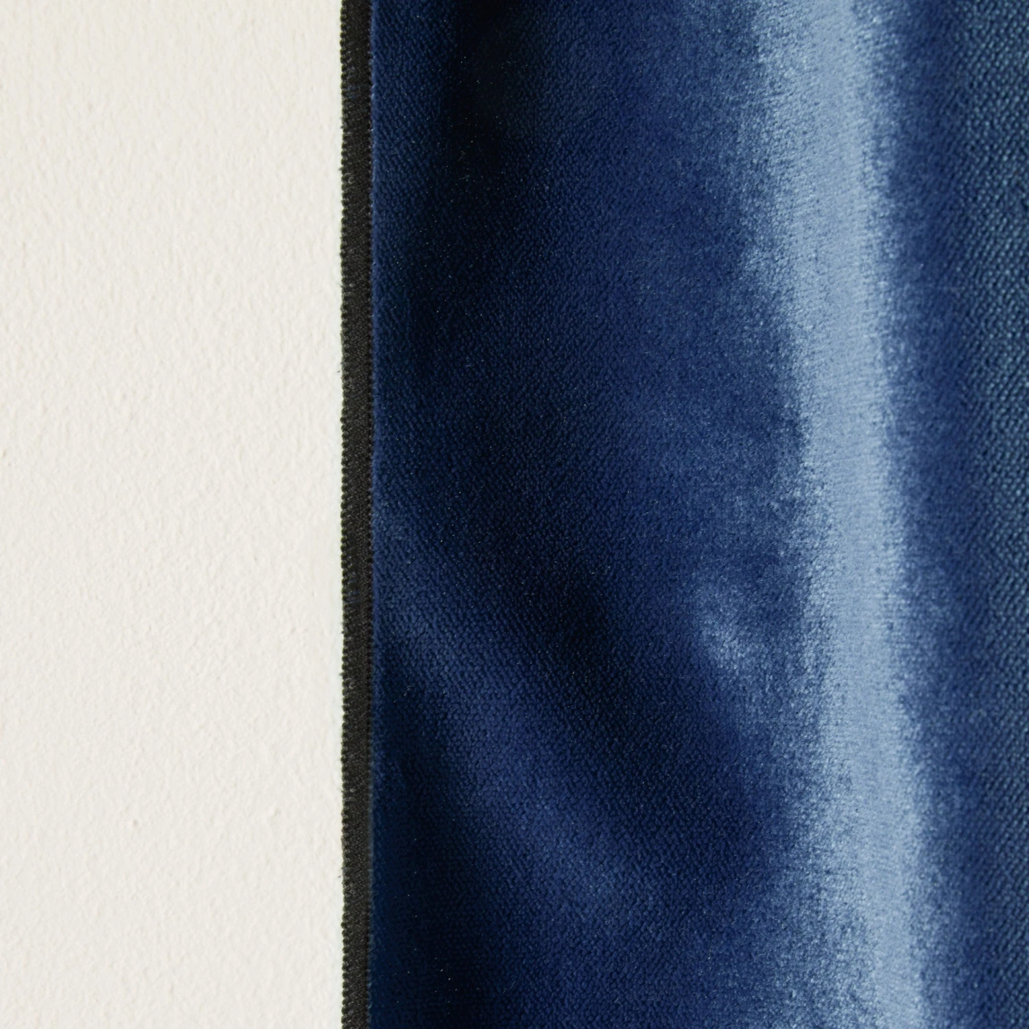 Le rideau à œillets dorés Dario est incontestablement élégant et chaleureux. On l’adore dans son coloris bleu nuit souligné d’un bourdon noir apportant profondeur à cette matière duveteuse.