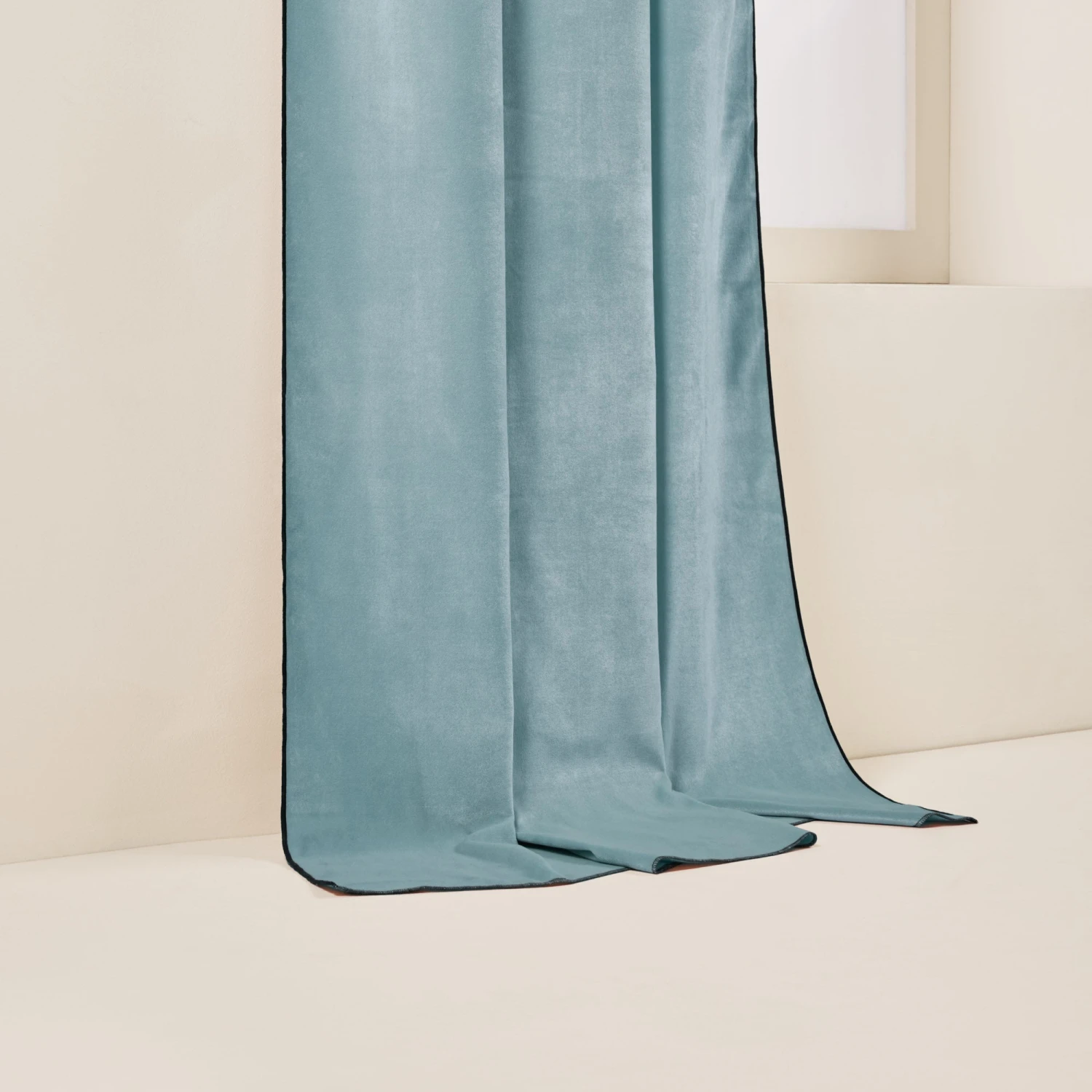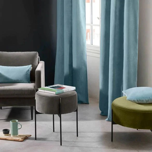 Le rideau à œillets dorés Dario est incontestablement élégant et chaleureux. On l’adore dans son coloris topaze aux teintes bleutées et vertes souligné d’un bourdon noir apportant douceur à cette matière duveteuse.