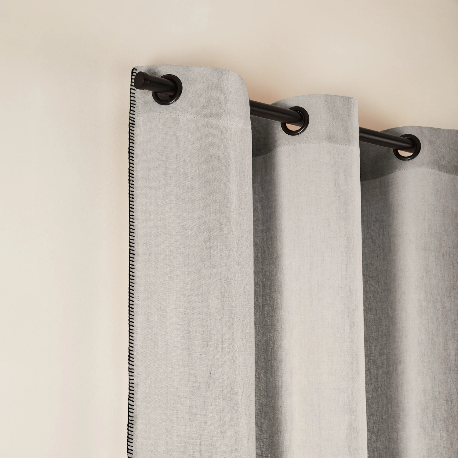 Contrasté d’un point de feston noir, le rideau à oeillets noirs Nino blanc minéral insuffle un esprit brut et authentique grâce à son lin lavé épais.