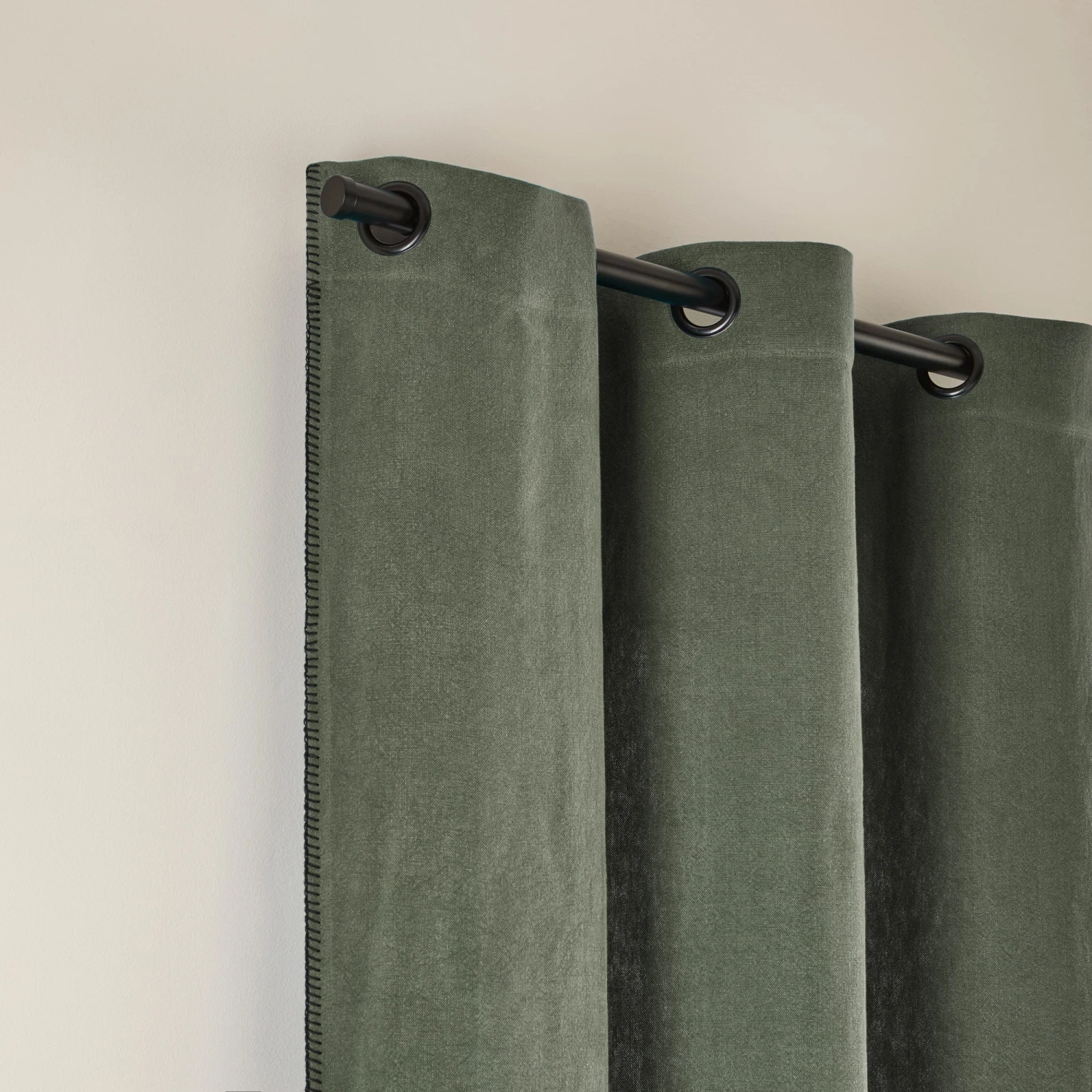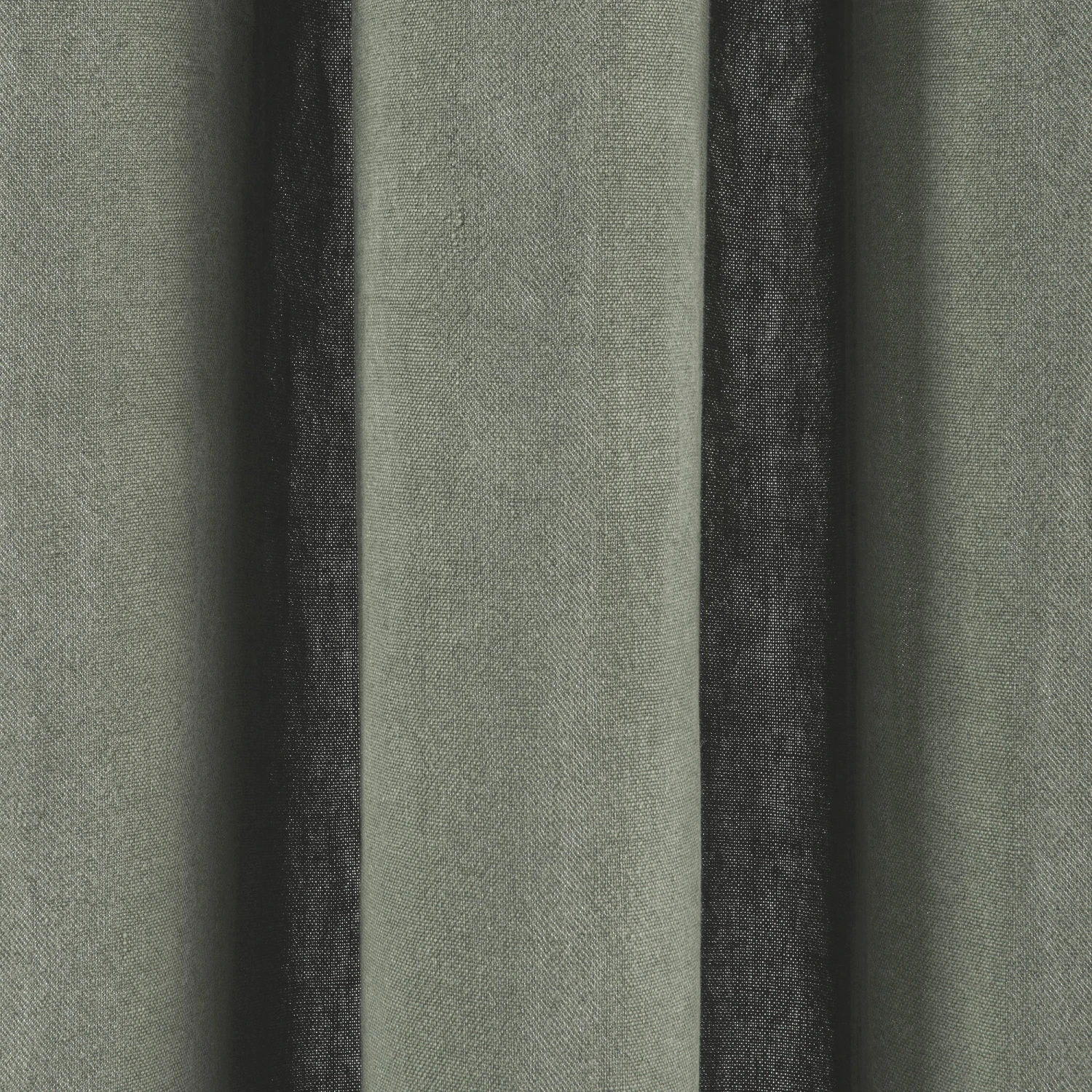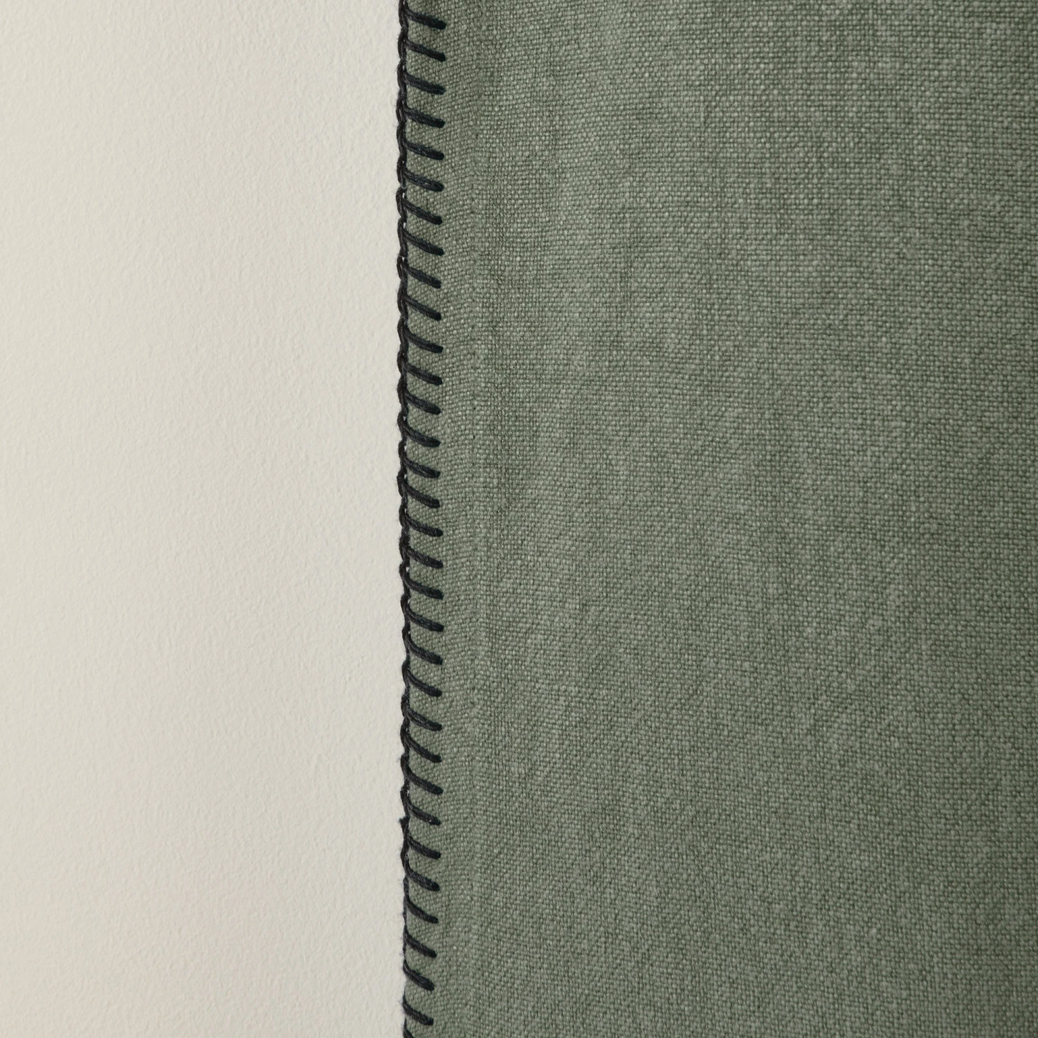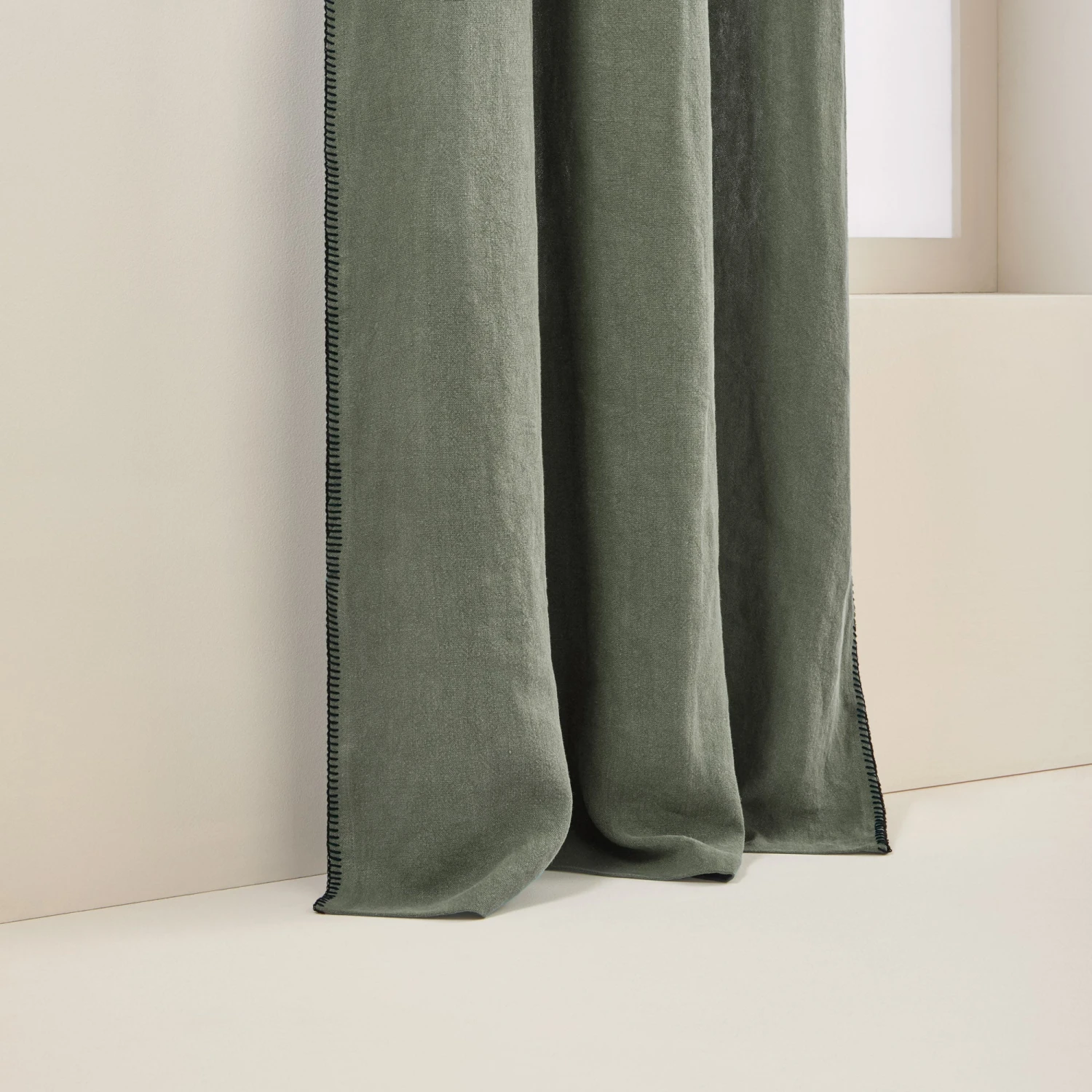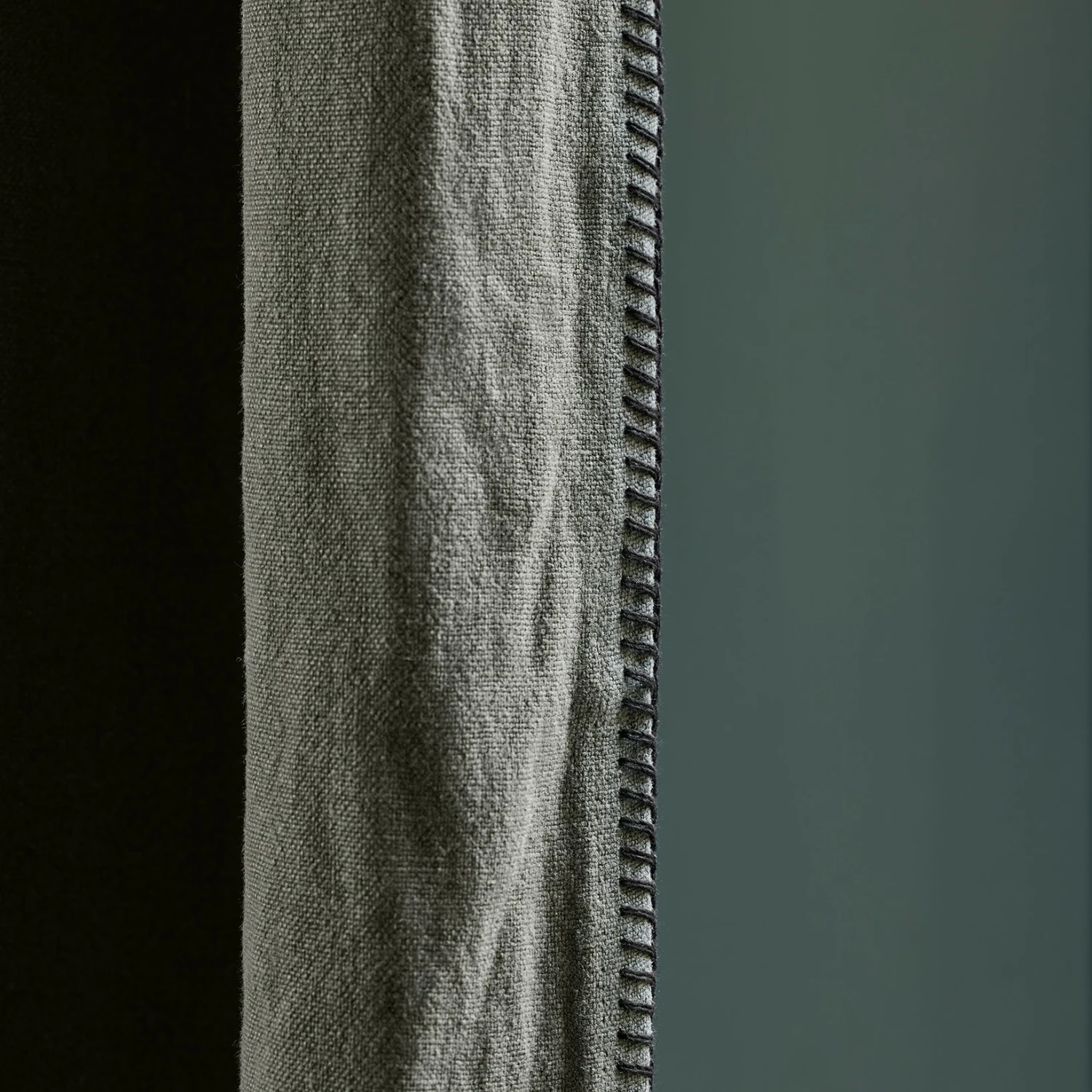 Contrasté d’un point de feston noir, le rideau à oeillets noirs Nino kaki grisé insuffle un esprit brut et authentique grâce à son lin lavé épais.