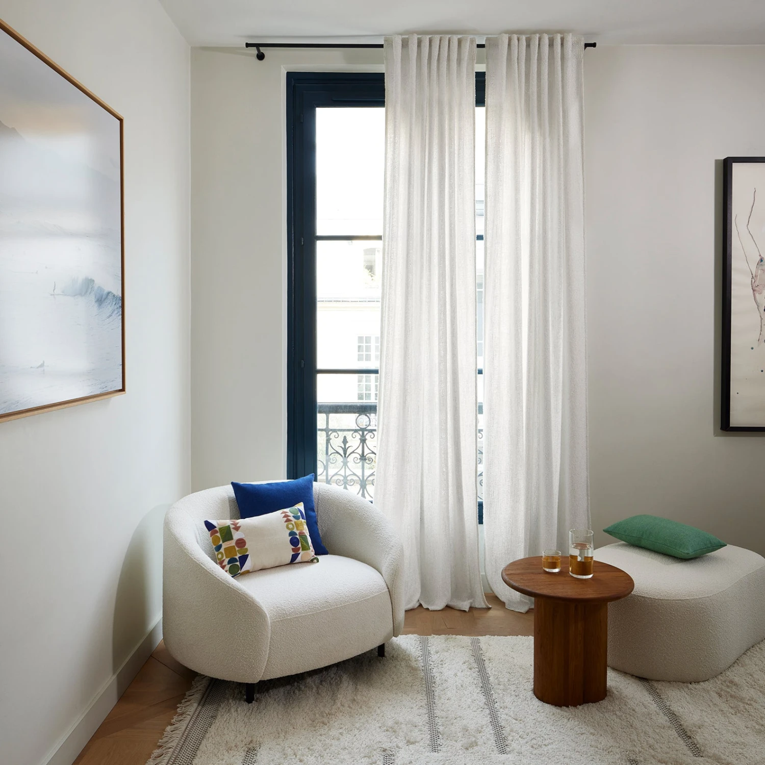 Notre rideau léger Celestinia a une texture mousseuse absolument divine. Comme un voile de poudreuse suspendu à vos fenêtres, il incarne parfaitement la douceur de l’hiver, le réconfort d’être chez soi quand il fait froid dehors.