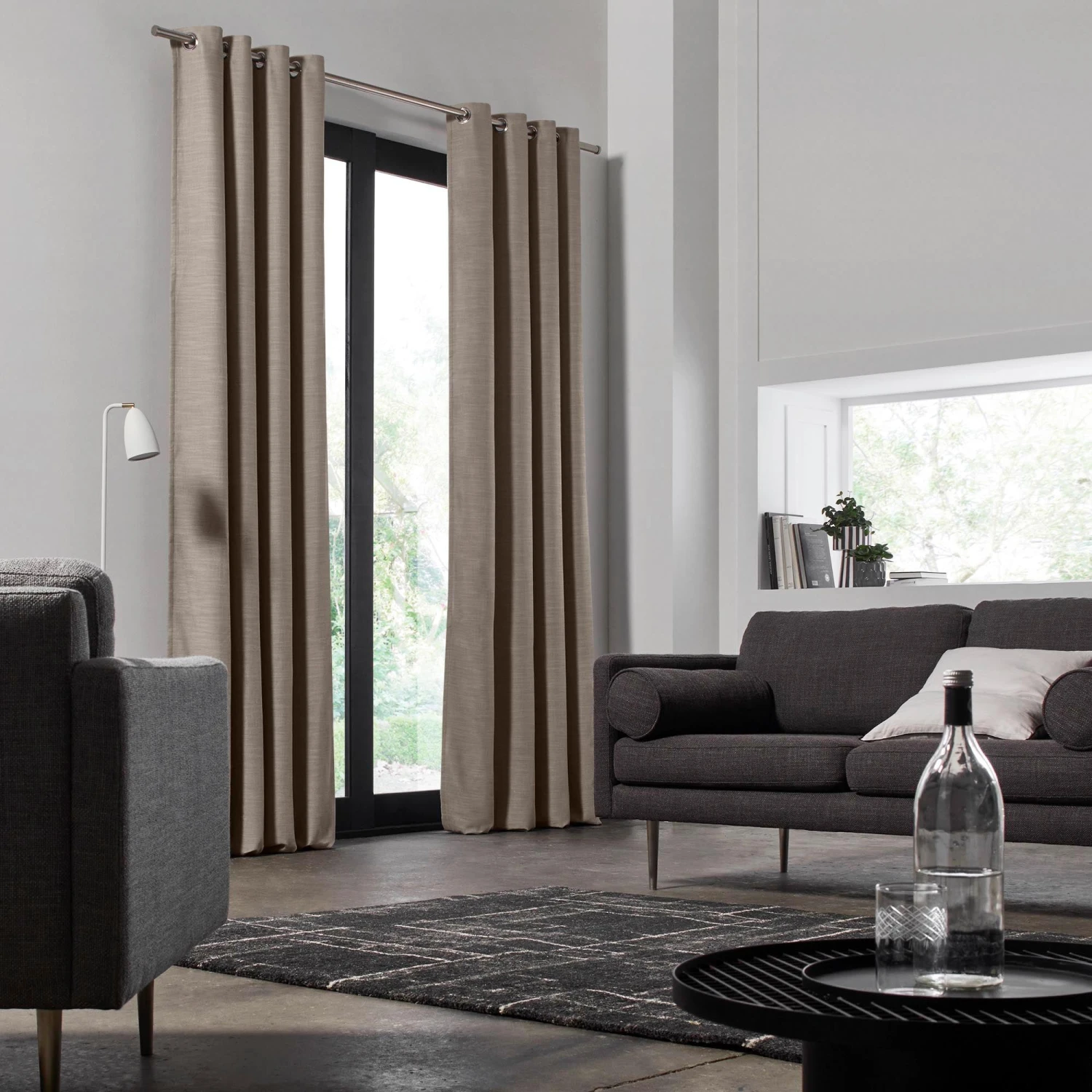 Le rideau à œillets doublé Bellavista beige chataigne crée une atmosphère décontractée grâce à sa matière et à son tombé élégant. Sa doublure occultante à 80% offre une protection significative contre la lumière.