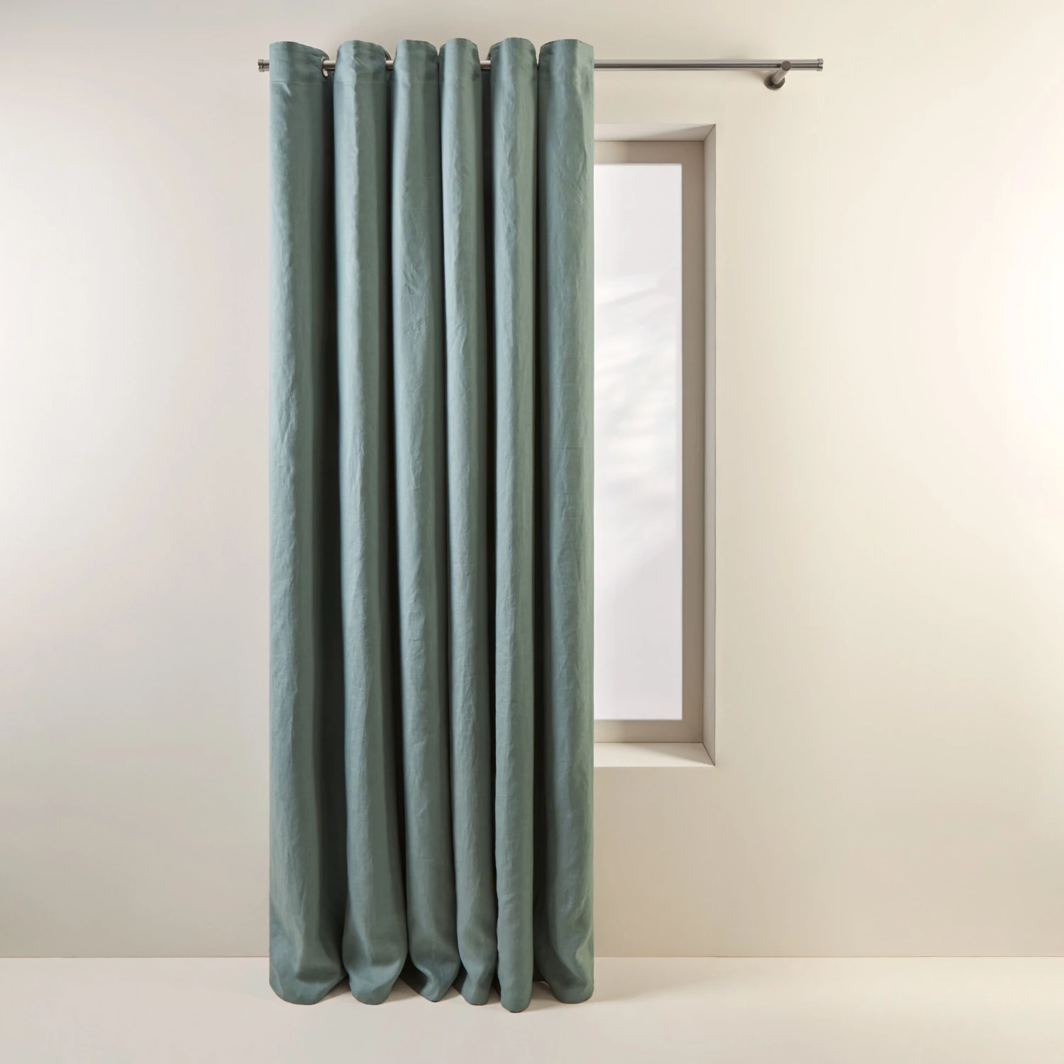 Le rideau à oeillets doublé occultant Carlina vert de gris est beau par son évidente simplicité. Doublé avec un tissu occultant à 80%, il garantit le noir quasi complet dans votre intérieur et offre une protection supplémentaire contre le froid.