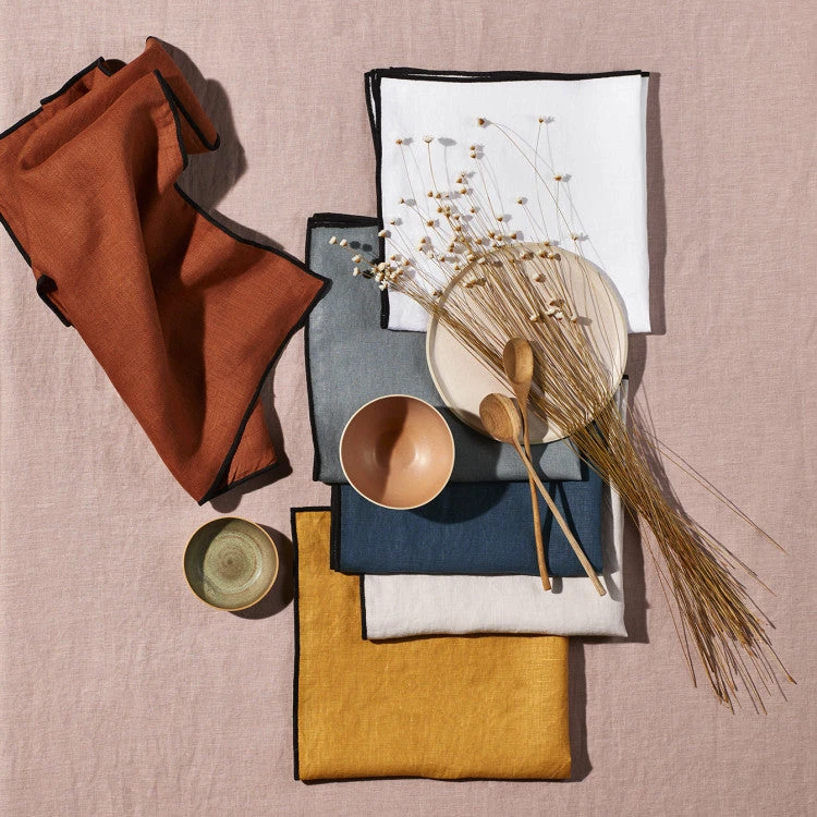 Lin lavé légèrement froissé, cette fibre 100% végétale est devenue incontournable et se décline en serviette, set et nappe pour créer une parure de table complète.