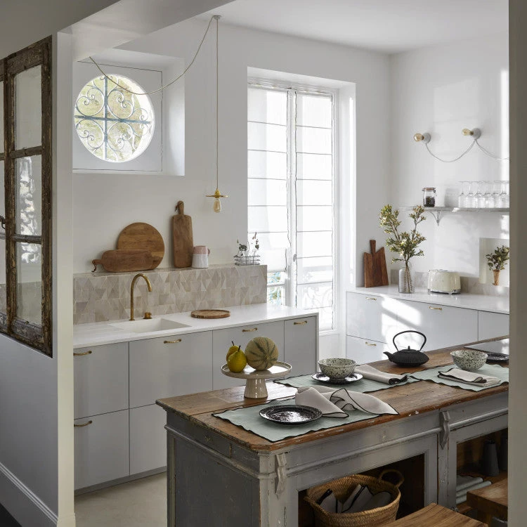 Lin lavé légèrement froissé, cette fibre 100% végétale est devenue incontournable et se décline en serviette, set et nappe pour créer une parure de table complète.