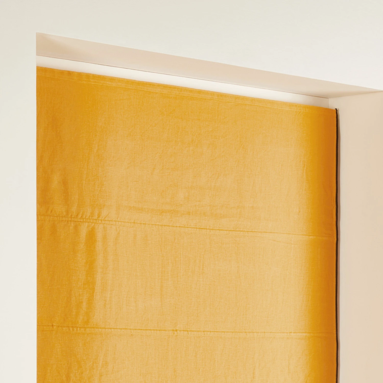 Ce store bateau ocre en lin lavé vous séduira par son point bourdon noir délicat qui lui confère une note graphique et élégante. Son caractère occultant à 80% garantira votre intimité.