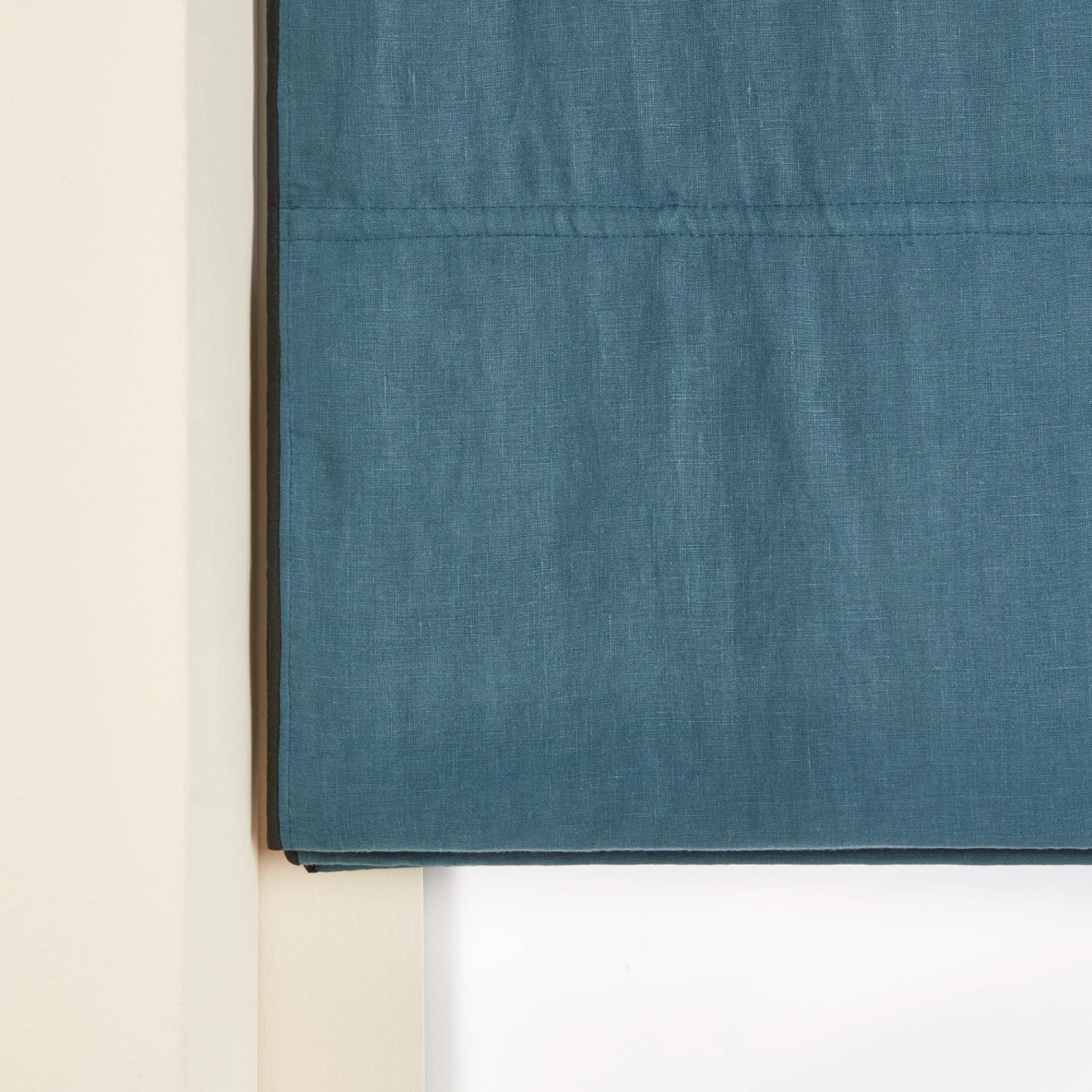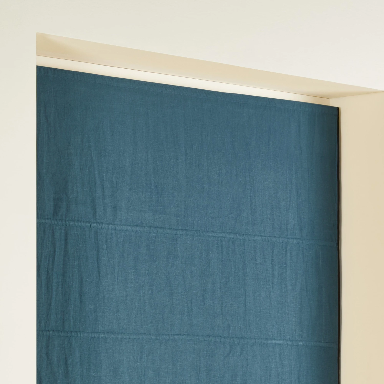 Ce store bateau bleu pétrole en lin lavé vous séduira par son point bourdon noir délicat qui lui confère une note graphique et élégante. Son caractère occultant à 80% garantira votre intimité.
