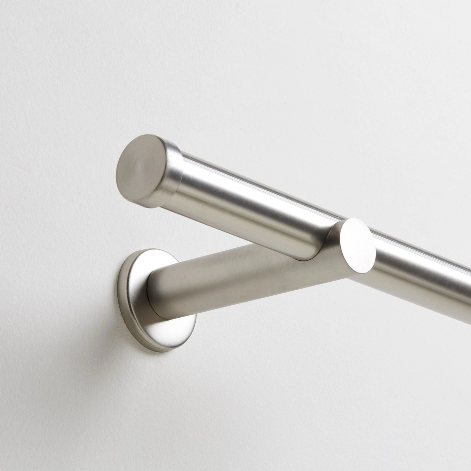 Ce support berceau Alma au coloris aluminium permet l’installation d’une tringle à rideaux, auto bloquée par une vis.