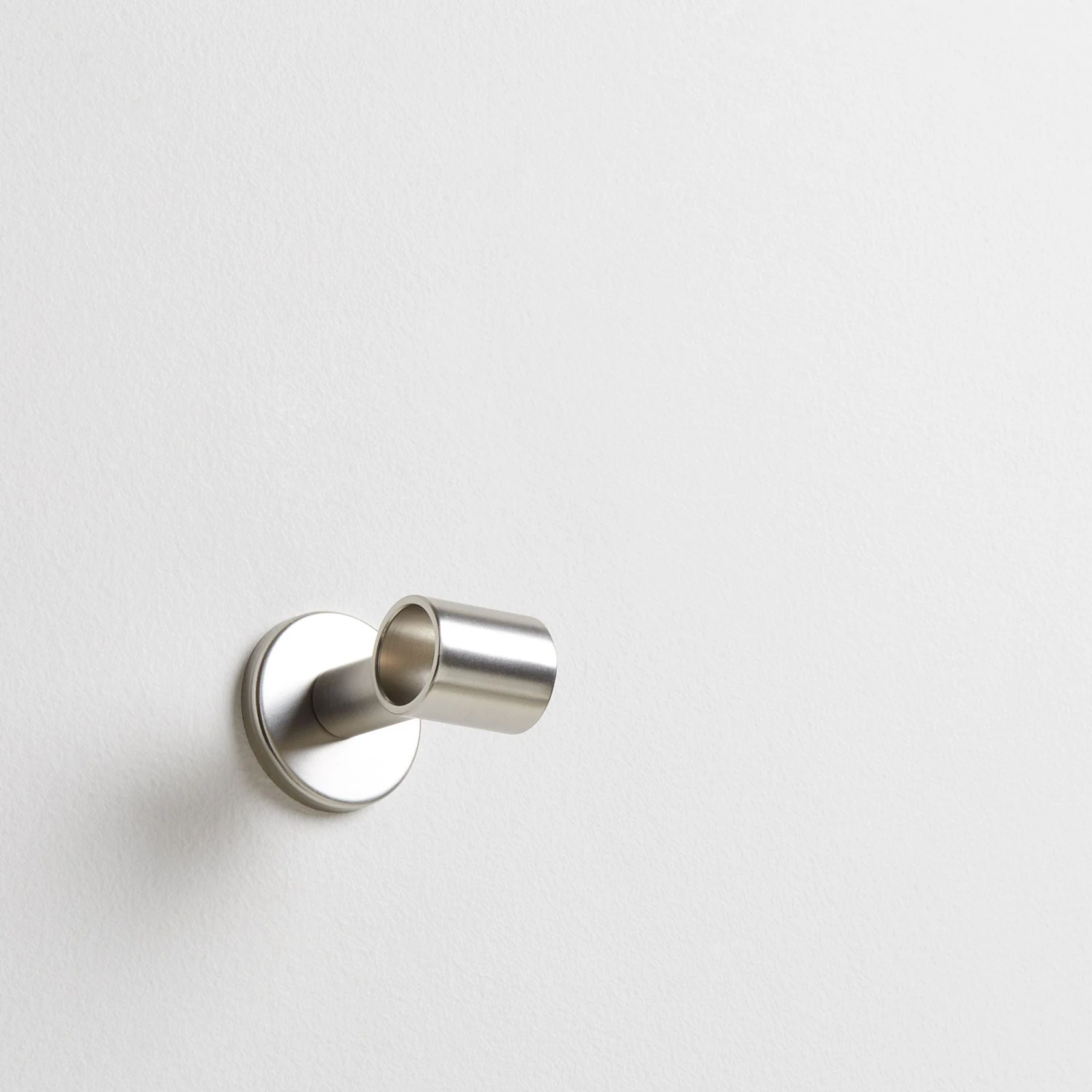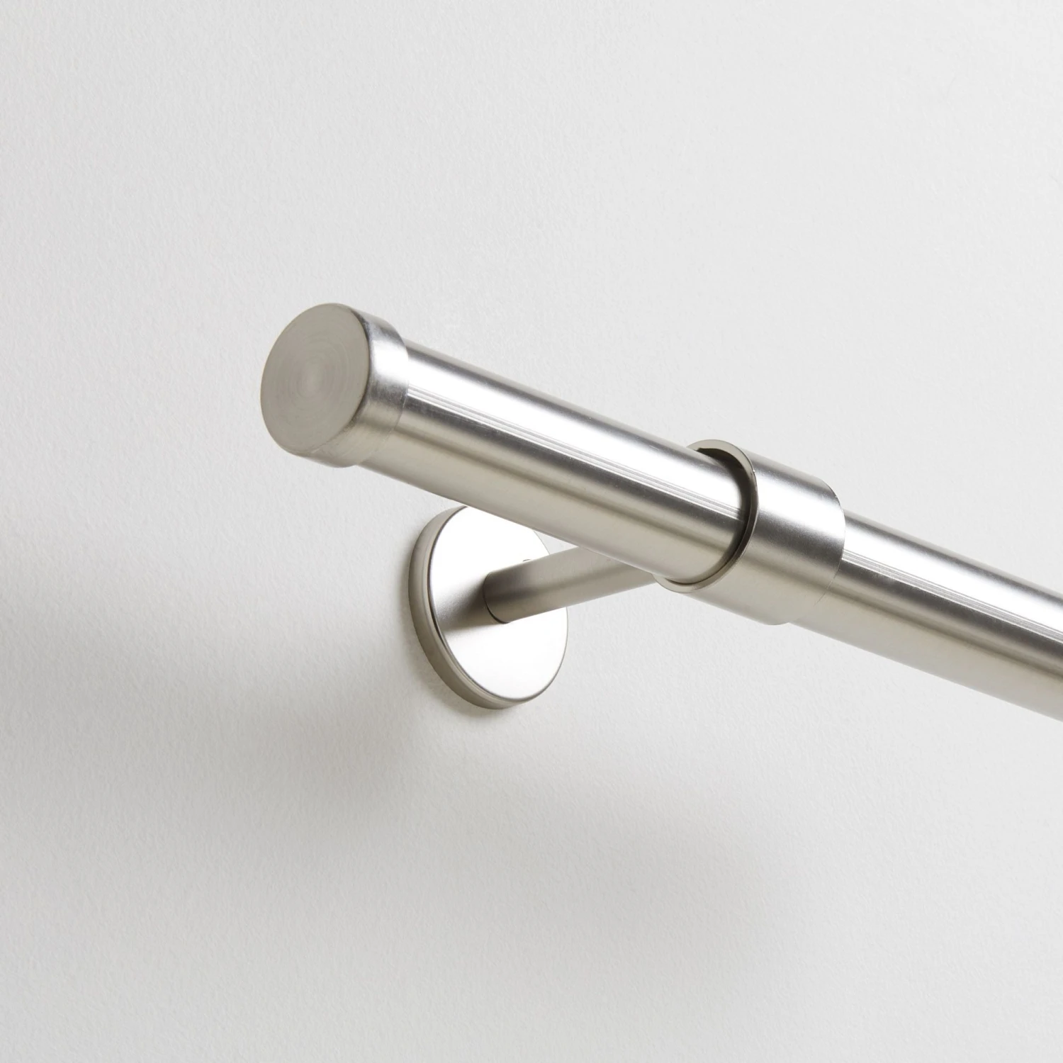 Accroché au mur ou au plafond, ce support lorgnon Alma au coloris aluminium permet l’installation d’une tringle à rideaux, auto bloquée par une vis.