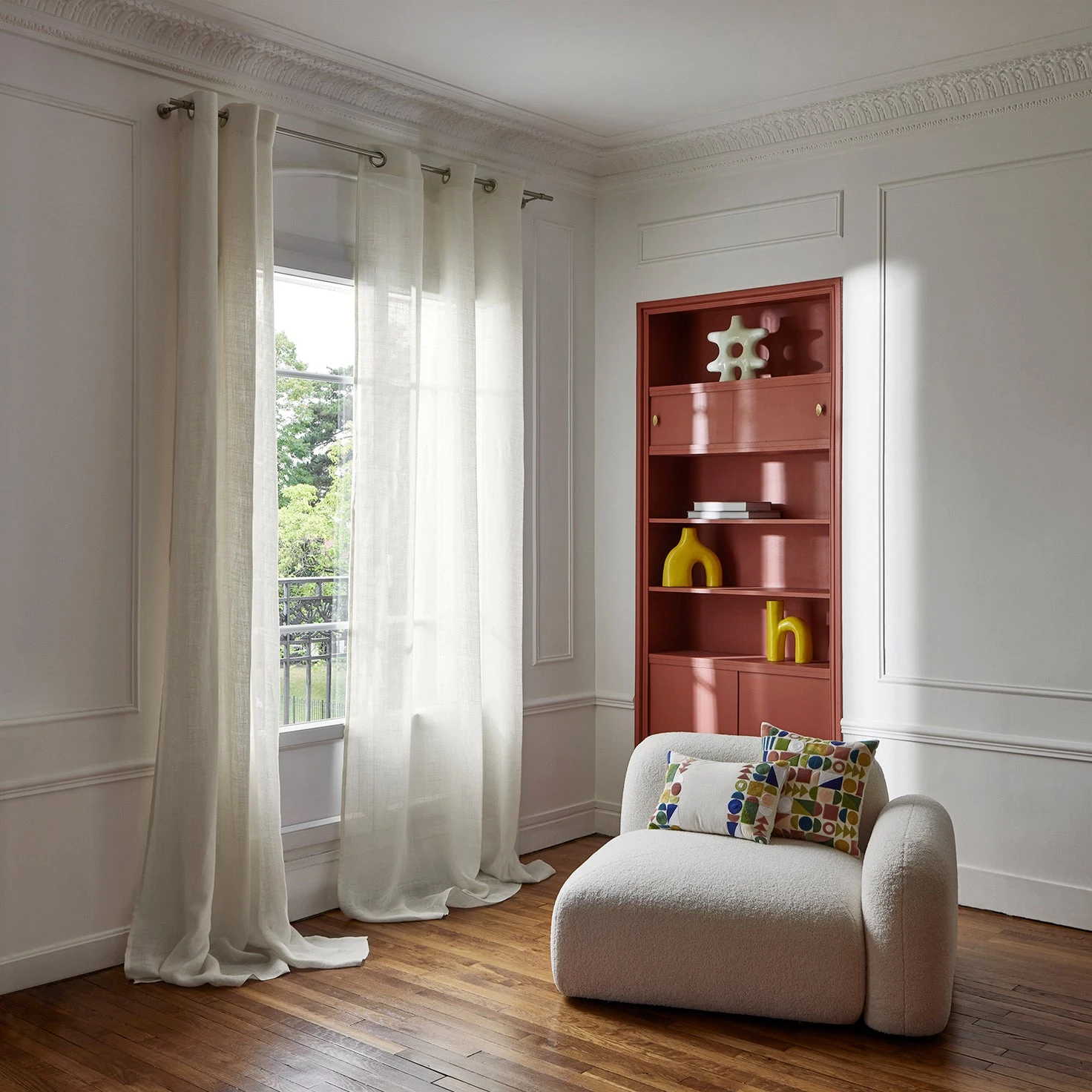 Le voilage à œillets Corinthe au tissage ultra aéré filtre la lumière pour nous offrir une jolie clarté.
